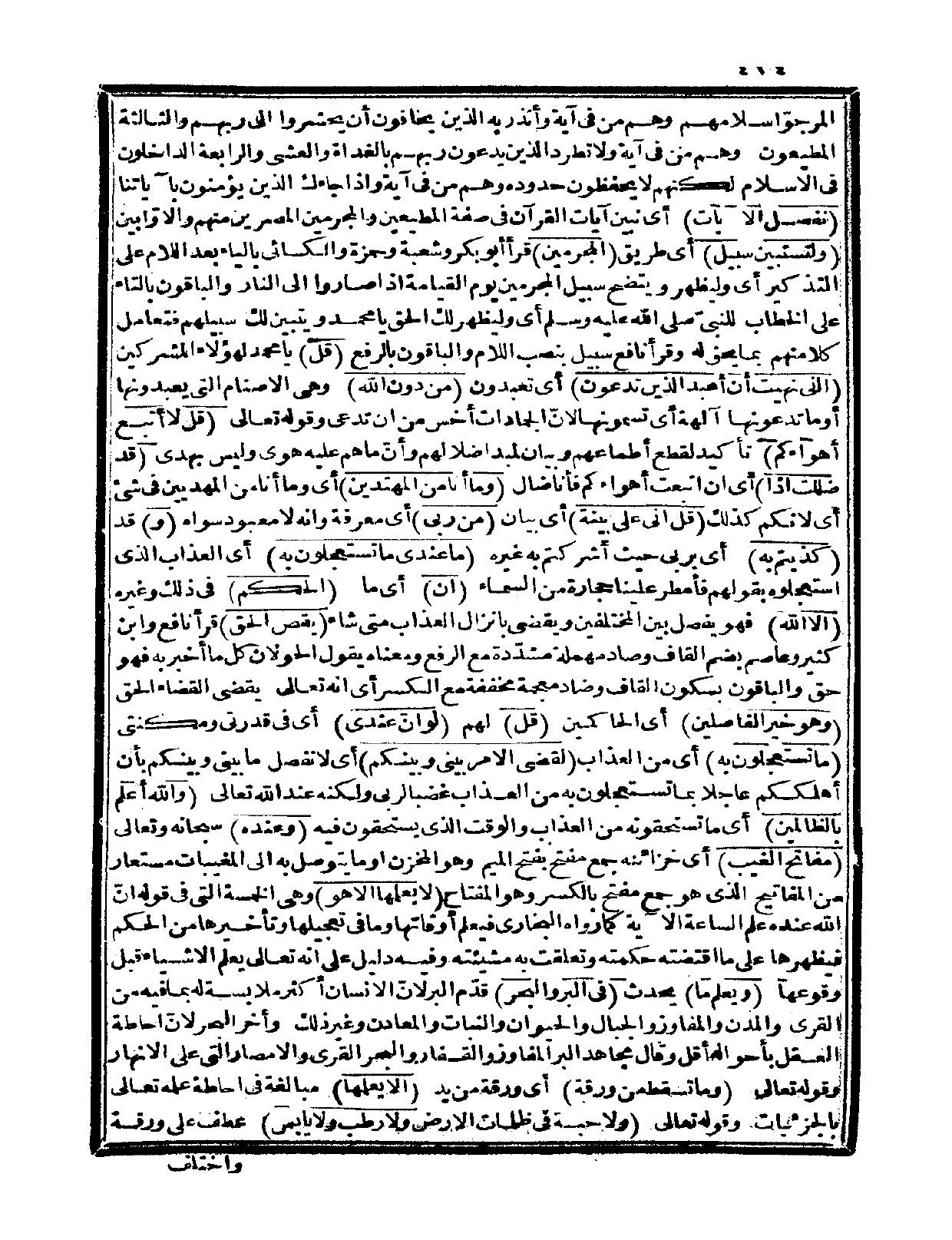 المرجوّ إسلامهم وهم من في آية {وأنذر به الذين يخافون أن يحشروا إلى ربهم} (الأنعام، 51) والثالثة: المطيعون وهم من في آية {ولا تطرد الذين يدعون ربهم بالغداة والعشي} (الأنعام، 52) والرابعة: الداخلون في الإسلام لكنهم لا يحفظون حدوده وهم من في آية {وإذا جاءك الذين يؤمنون بآياتنا} (الأنعام، 54) {نفصل الآيات} أي: نبين آيات القرآن في صفة المطيعين والمجرمين المصرين منهم والأوّابين {ولتستبين سبيل} أي: طريق {المجرمين} قرأ أبو بكر وشعبة وحمزة والكسائي بالياء بعد اللام على التذكير أي: وليظهر ويتضح سبيل المجرمين يوم القيامة إذا صاروا في النار والباقون بالتاء على الخطاب للنبيّ صلى الله عليه وسلم أي: وليظهر لك الحق يا محمد ويتبين لك سبيلهم فتعامل كلاً منهم بما يحق له، وقرأ نافع سبيل بنصب، اللام، والباقون بالرفع.