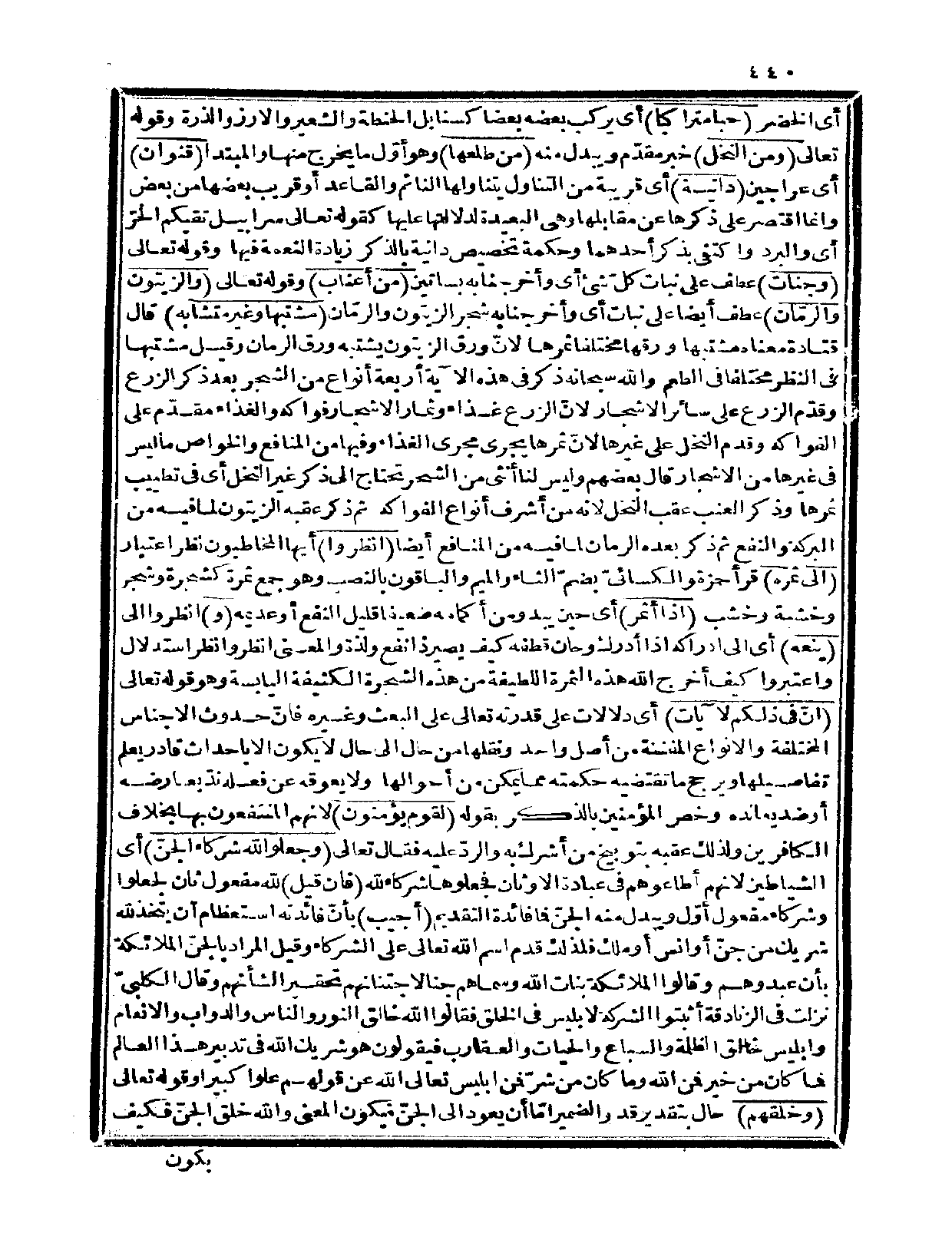 أي: والبرد واكتفى بذكر أحدهما وحكمة تخضيص دانية بالذكر زيادة النعمة فيها وقوله تعالى: {وجنات} عطف على نبات كلّ شيء أي: وأخرجنا به بساتين {من أعناب} وقوله تعالى: {والزيتون والرمّان} عطف أيضاً على نبات أي: وأخرجنا به شجر الزيتون والرمّان {مشتبهاً وغير متشابه} قال قتادة: معناه مشتبهاً ورقها مختلفاً ثمرها لأن ورق الزيتون يشتبه ورق الرمان، وقيل: مشتبهاً في النظر مختلفاً في الطعم والله سبحانه ذكر في هذه الآية أربعة أنواع من الشجر بعد ذكر الزرع وقدّم الزرع على سائر الأشجار لأنّ الزرع غذاء وثمار الأشجار فواكه والغذاء مقدّم على الفواكه وقدم النخل على غيرها لأنّ ثمرها يجري مجرى الغذاء وفيها من المنافع والخواص ما ليس في غيرها من الأشجار قال بعضهم وليس لنا أنثى من الشجر تحتاج إلى ذكر غير النخل أي: في تطييب ثمرها وذكر العنب عقب النخل لأنه من أشرف أنواع الفواكه ثم ذكر عقبه الزيتون لما فيه من البركة والنفع ثم ذكر بعده الرمان لما فيه من المنافع أيضاً {انظروا} أيها المخاطبون نظر اعتبار {إلى ثمره} قرأ حمزة والكسائيّ بضمّ الثاء والميم، والباقون بالنصب، وهو جمع ثمرة كشجرة وشجر وخشبة وخشب {إذا أثمر} أي: حين يبدو من أكمامه ضعيفاً قليل النفع أو عديمه {و} انظروا إلى {ينعه} أي: إلى إدراكه إذا أدرك وحان قطفه كيف يصير ذا نفع ولذة والمعنى انظروا نظر استدلال واعتبروا كيف أخرج الله هذه الثمرة اللطيفة من هذه الشجرة الكثيفة اليابسة وهو قوله تعالى: {إنّ في ذلكم لآيات} أي: دلالات على قدرته تعالى على البعث وغيره فإنّ حدوث الأجناس المختلفة والأنواع المفننة من أصل واحد ونقلها من حال إلى حال لا يكون إلا بإحداث قادر يعلم تفاصيلها ويرجح ما تقتضيه حكمته مما يمكن من أحوالها ولا يعوقه عن فعله ندّ يعارضه أو ضد يعانده وخص المؤمنين بالذكر بقوله: {لقوم يؤمنون} لأنهم المنتفعون بها بخلاف الكافرين ولذلك عقبه بتوبيخ من