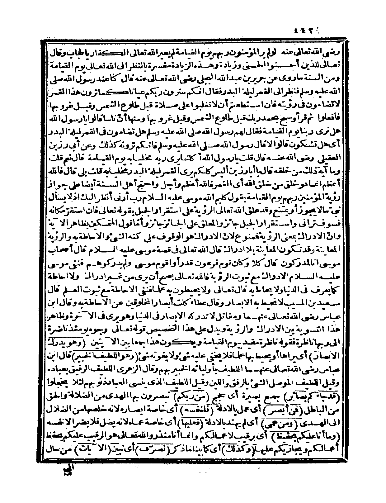 رضي الله تعالى عنه: لو لم ير المؤمنون ربهم يوم القيامة لم يعير الله تعالى الكفار بالحجاب وقال تعالى: {للذين أحسنوا الحسنى وزيادة} (يونس، 26)