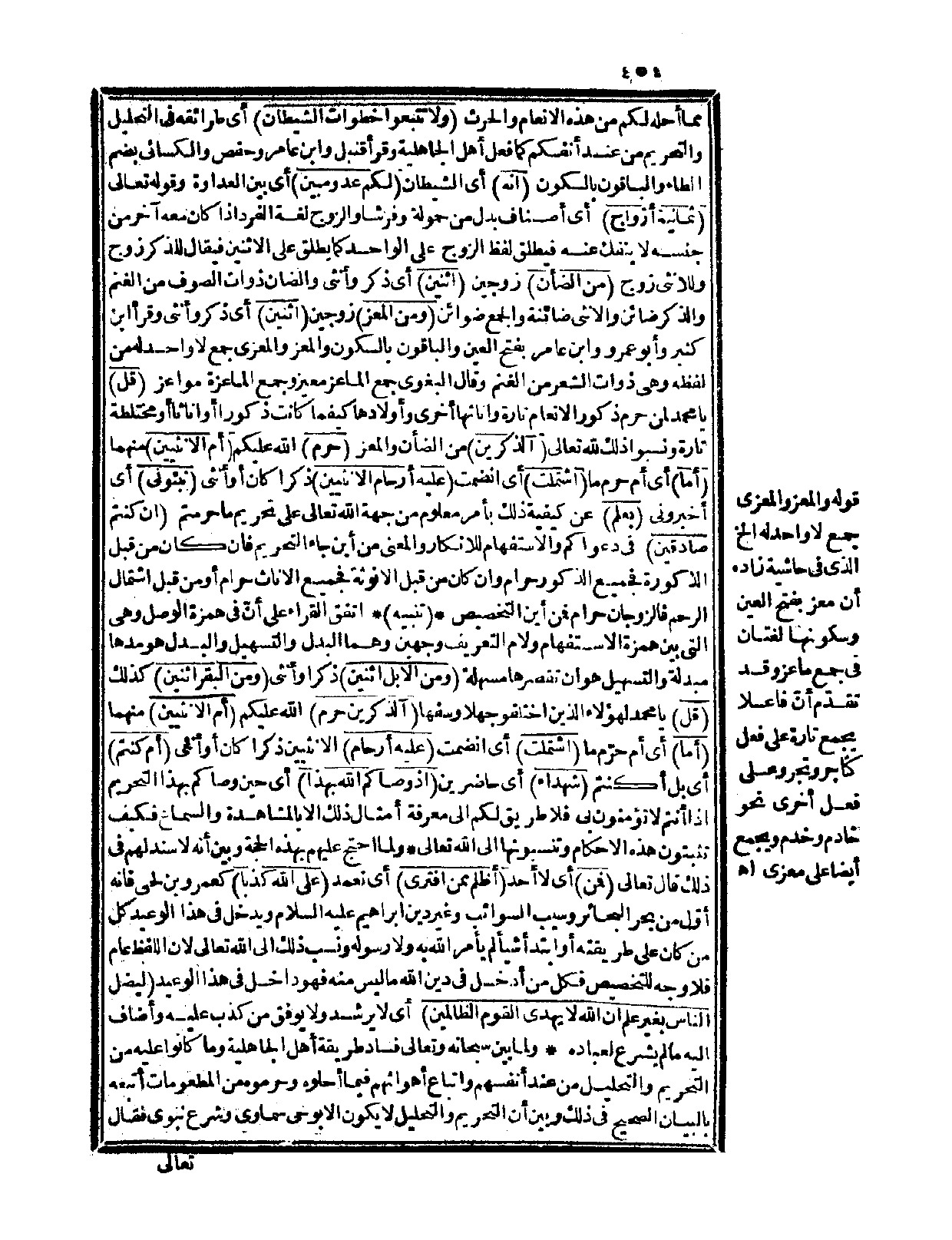 {ثمانية أزواج} أي: أصناف بدل من حمولة وفرشاً والزوج لغة الفرد إذا كان معه آخر من جنسه لا ينفك عنه فيطلق لفظ الزوج على الواحد كما يطلق على الاثنين فيقال للذكر: زوج، وللأنثى: زوج {من الضأن} زوجين {اثنين} أي: ذكر وأنثى والضأن ذوات الصوف من الغنم والذكر ضائن والأنثى ضائنة والجمع ضوائن {ومن المعز} زوجين {اثنين} أي: ذكر وأنثى، وقرأ ابن كثير وأبو عمرو وابن عامر بفتح العين والباقون بالسكون والمعز والمعزى جمع لا واحد له من لفظه وهي ذوات الشعر من الغنم، وقال البغوي: جمع الماعز معيز وجمع الماعزة مواعز {قل} يا محمد لمن حرم ذكور الأنعام تارة وإناثها أخرى وأولادها كيفما كانت ذكوراً أو إناثاً أو مختلطة تارة ونسبوا ذلك لله تعالى {الذكرين} من الضأن والمعز {حرم} الله عليكم {أم الأنثيين} منهما {أما} أي: أم حرم ما {اشتملت} أي: انضمت {عليه أرحام الأنثيين} ذكراً كان أو أنثى {نبئوني} أي: أخبروني {بعلم} عن كيفية ذلك بأمر معلوم من جهة الله تعالى على تحريم ما حرمتم {إن كنتم صادقين} في دعواكم والاستفهام للإنكار والمعنى: من أين جاء التحريم فإن كان من قبل الذكورة فجميع الذكور حرام وإن كان من قبل الأنوثة فجميع الإناث حرام أو من قبل اشتمال الرحم فالزوجان حرام فمن أين التخصيص.