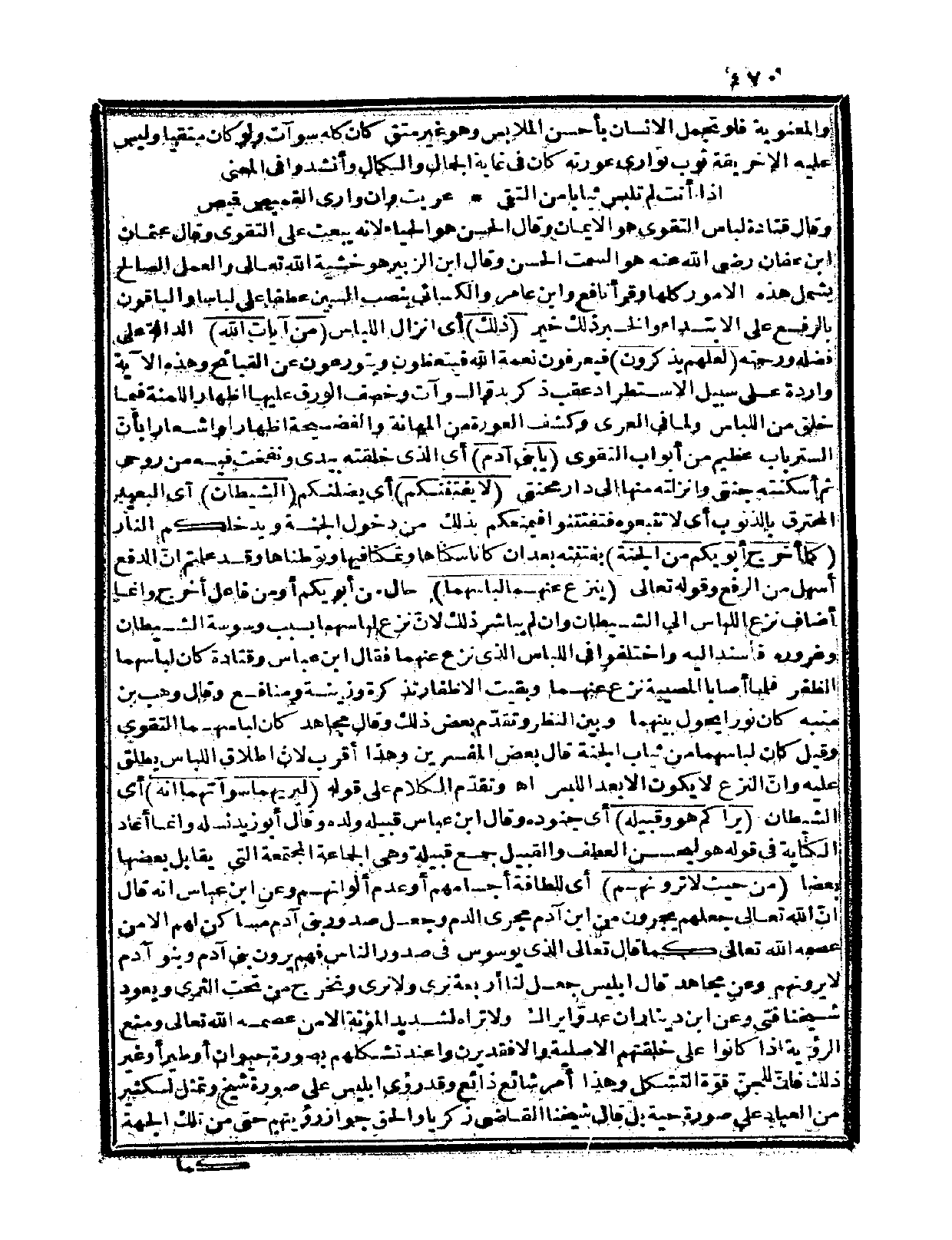 والمعنوية فلو تجمل الإنسان بأحسن الملابس وهو غير متق كان كله سوآت ولو كان متقياً وليس عليه إلا خريقة ثوب تواري عورته كان في غاية الجمال والكمال وأنشدوا في المعنى: