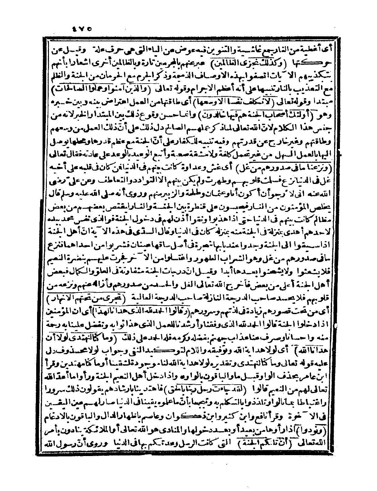 وروي أنه صلى الله عليه وسلم قال: «يخلص المؤمنون من النار فيحبسون على قنطرة بين الجنة والنار ليقتص بعضهم من بعض مظالم كانت بينهم في الدنيا حتى إذا هذبوا ونقوا أذن لهم في دخول الجنة فوالذي نفس محمد بيده لأحدهم أهدى بمنزله في الجنة منه بمنزله كان في الدنيا» وقال السديّ في هذه الآية: إنّ أهل الجنة إذا سيقوا إلى الجنة وجدوا عند بابها شجرة في أصل ساقها عينان فشربوا من إحداهما فنزع ما في صدورهم من غل وهو الشراب الطهور واغتسلوا من الآخر فجرت عليهم بنضرة النعيم فلا يشعثوا ولا يشحنوا بعدها أبداً، وقيل: إنّ درجات الجنة متفاوتة في العلوّ والكمال فبعض أهل الجنة أعلى من بعض فأخرج الله تعالى الغل والحسد من صدورهم وأزاله عنهم ونزعه من قلوبهم فلا يحسد صاحب الدرجة النازلة صاحب الدرجة العالية {تجري من تحتهم الأنهار} أي: من تحت قصورهم زيادة في لذتهم وسرورهم {وقالوا الحمد الذي هدانا لهذا} أي: إن المؤمنين إذا دخلوا الجنة قالوا: الحمد لله الذي وفقنا وأرشدنا للعمل الذي هذا ثوابه وتفضل علينا به رحمة منه وإحساناً وصرف عنا عذاب جهنم بفضله وكرمه فله الحمد على ذلك {وما كنا لنهتدي لولا أن هدانا الله} أي: لولا هداية الله وتوفيقه، واللام لتوكيد النفي وجواب لولا محذوف دل عليه قوله تعالى: {وما كنا لنهتدي} وتقديره: لولا هداية الله لنا موجودة لشقينا أو ما كنا مهتدين، وقرأ ابن عامر بحذف الواو قبل ما والباقون بالواو.