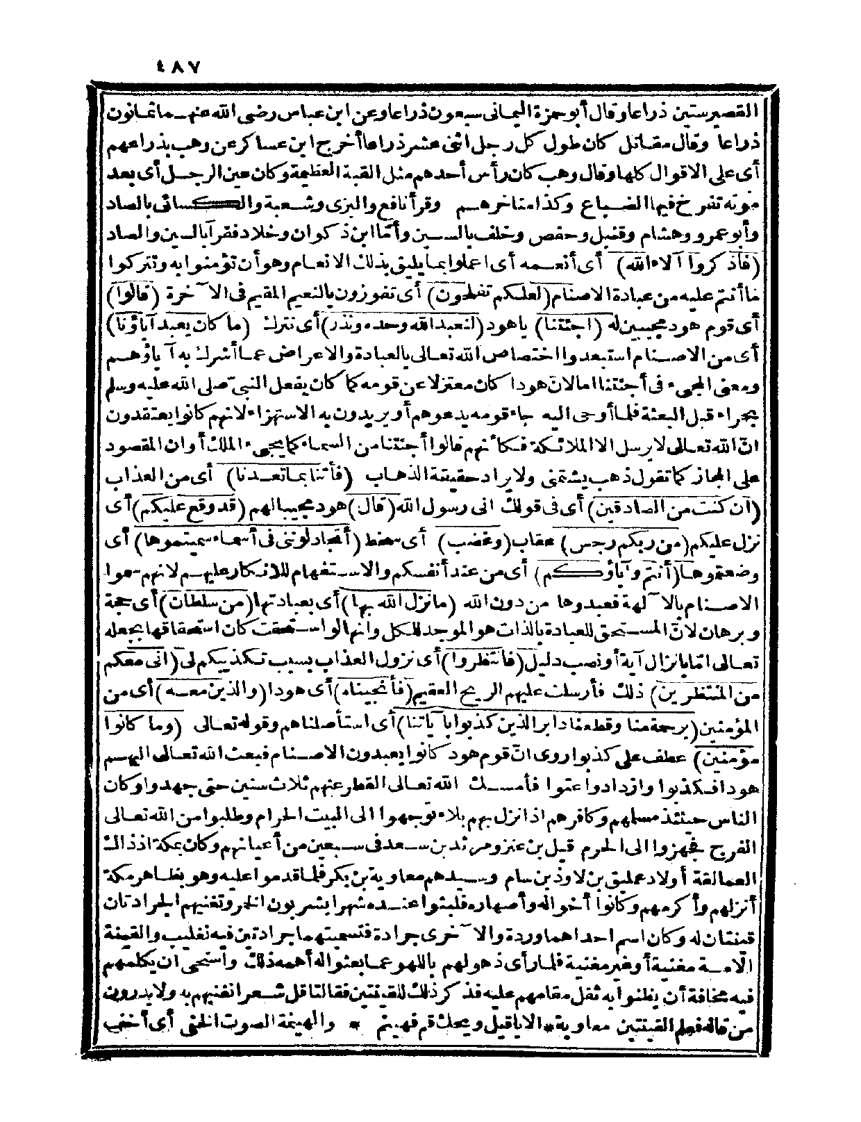 القصير ستين ذراعاً، وقال أبو حمزة اليماني: سبعون ذراعاً، وعن ابن عباس رضي الله عنهما: ثمانون ذراعاً، وقال مقاتل: كان طول كل رجل اثني عشر ذراعاً، أخرج ابن عساكر عن وهب بذراعهم أي: على الأقوال كلها، وقال وهب: كان رأس أحدهم مثل القبة العظمية وكان عين الرجل ـ أي: بعد موته ـ تفرخ فيها الضباع وكذا مناخرهم، وقرأ نافع والبزي وشعبة والكسائي بالصاد وأبو عمرو وهشام وقنبل وحفص وخلف بالسين وأمّا ابن ذكوان وخلاد فقرآ بالسين والصاد {فاذكروا آلاء الله} أي: أنعمه أي: اعملوا بما يليق بذلك الإنعام وهو أن تؤمنوا به وتتركوا ما أنتم عليه من عبادة الأصنام {لعلم تفلحون} أي: تفوزون بالنعيم المقيم في الآخرة.