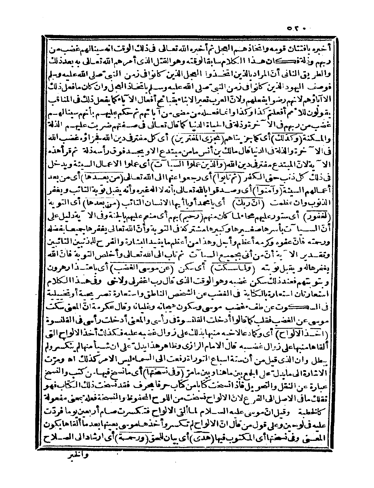 {ولما سكت} أي: سكن {عن موسى الغضب} أي: باعتذار هارون وبتوبتهم فعند ذلك سكن غضبه وهو الوقت الذي قال: رب اغفر لي ولأخي، وفي هذا الكلام استعارتان استعارة بالكناية في الغضب عن الشخص الناطق واستعارة تصريحية أو تخييلية في السكوت عن طفء غضب موسى وسكون هيجانه وغليانه، وقال عكرمة: إنّ المعنى: سكت موسى عن الغضب فقلب كما قالوا: أدخلت القلنسوة في رأسي والمعنى: أدخلت رأسي في القلنسوة {أخذ الألواح} أي: وكما دعا لأخيه منبهاً بذلك على زوال غضبه عليه فكذلك أخذ الألواح التي ألقاها منبهاً على زوال غضبه، قال الإمام الرازي: وظاهر هذا يدلّ على أن شيئاً منها لم ينكسر ولم يبطل وأن الذي قيل من أن ستة أسباع التوراة رفعت إلى السماء ليس الأمر كذلك اه. ومرّت الإشارة إلى ما يدلّ على الجمع بين ما هنا وبين ما مرّ {وفي نسختها} أي: ما نسخ فيها من كتب والنسخ عبارة عن النقل والتحويل فإذا نسخت كتاباً من كتاب حرفاً بحرف فقد نسخت ذلك الكتاب فهو نقلك ما في الأصل إلى الفرع لأن الألواح نسخت من اللوح المحفوظ والنسخة فعلة بمعنى مفعولة كالخطبة، وقيل: إنّ موسى عليه السلام لما ألقى الألواح فتكسرت صام أربعين يوماً فردّت عليه في لوحين، وعلى قول من قال: إنّ الألواح لم تكسر وأخذها موسى بعينها بعدما ألقاها يكون المعنى: وفي نسختها أي: المكتوب فيها {هدى} أي: بيان للحق {ورحمة} أي: إرشاد إلى الصلاح