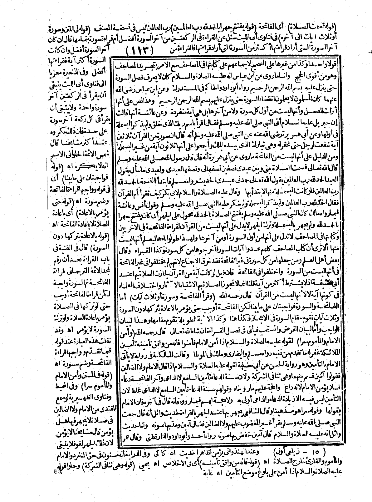 ـــــــــــــــــــــــــــــQقَوْلُهُ: قَسَمْت الصَّلَاةَ) أَيْ الْفَاتِحَةَ (قَوْلُهُ: يَفْتَتِحُ جَهْرًا بِ الْحَمْدُ لِلَّهِ رَبِّ الْعَالَمِينَ) رَبِّ الْعَالَمِينَ لَيْسَ فِي نُسْخَةِ الْمُصَنِّفِ (قَوْلُهُ فِي الْمَتْنِ: وَسُورَةٍ أَوْ ثَلَاثِ آيَاتٍ إلَى آخِرِهِ) فِي فَتَاوَى أَبِي اللَّيْثِ سُئِلَ عَنْ الْقِرَاءَةِ فِي الرَّكْعَتَيْنِ مِنْ آخِرِ السُّورَةِ أَفْضَلُ أَمْ قِرَاءَةُ سُورَةٍ بِتَمَامِهَا قَالَ إنْ كَانَ آخِرَ السُّورَةِ الَّتِي أَرَادَ قِرَاءَتَهَا أَكْثَرَ مِنْ السُّورَةِ الَّتِي أَرَادَ قِرَاءَتَهَا فَالْقِرَاءَةُ مِنْ آخِرِ السُّورَةِ أَفْضَلُ وَإِنْ كَانَتْ السُّورَةُ أَكْثَرَ آيَةٍ فَقِرَاءَتُهَا أَفْضَلُ وَفِي الذَّخِيرَةِ مَعْزِيًّا إلَى فَتَاوَى أَبِي اللَّيْثِ يَنْبَغِي أَنْ يَقْرَأَ فِي الرَّكْعَتَيْنِ آخِرَ سُورَةٍ وَاحِدَةٍ وَلَا يَنْبَغِي أَنْ يَقْرَأَ فِي كُلِّ رَكْعَةٍ آخِرَ سُورَةٍ عَلَى حِدَةٍ فَإِنَّ ذَلِكَ مَكْرُوهٌ عِنْدَ أَكْثَرِ مَشَايِخِنَا قَالَ شَمْسُ الْأَئِمَّةِ الْحَلْوَانِيُّ الْأَصَحُّ أَنَّهُ لَا يُكْرَهُ. اهـ. (قَوْلُهُ: فَوَاجِبَتَانِ عَلَى مَا بَيَّنَّا) أَيْ فِي قَوْلِهِ وَوَاجِبُهَا قِرَاءَةُ الْفَاتِحَةِ وَضَمُّ سُورَةٍ. اهـ. (قَوْلُهُ: حَتَّى يُؤْمَرَ بِالْإِعَادَةِ) أَيْ بِإِعَادَةِ الصَّلَاةِ لَا بِإِعَادَةِ الْفَاتِحَةِ. اهـ. (قَوْلُهُ: بِالْإِعَادَةِ بِتَرْكِهَا دُونَ السُّورَةِ) قَالَ فِي الْقُنْيَةِ فِي بَابِ الْقِرَاءَةِ بَعْدَ أَنْ رَقَّمَ لِمَجْدِ الْأَئِمَّةِ التَّرْجُمَانِيِّ: قِرَاءَةُ الْفَاتِحَةِ، ثُمَّ السُّورَةُ وَاجِبَةٌ لَكِنَّ قِرَاءَةَ الْفَاتِحَةِ أَوْجَبُ حَتَّى لَوْ تَرَكَهَا فِي الصَّلَاةِ يُؤْمَرُ بِإِعَادَةِ الصَّلَاةِ وَلَوْ تَرَكَ السُّورَةَ لَا يُؤْمَرُ. اهـ. وَقَدْ نَقَلْت هَذِهِ الْعِبَارَةَ عِنْدَ قَوْلِهِ فِيمَا تَقَدَّمَ وَوَاجِبُهَا قِرَاءَةُ الْفَاتِحَةِ وَضَمُّ سُورَةٍ. اهـ. .