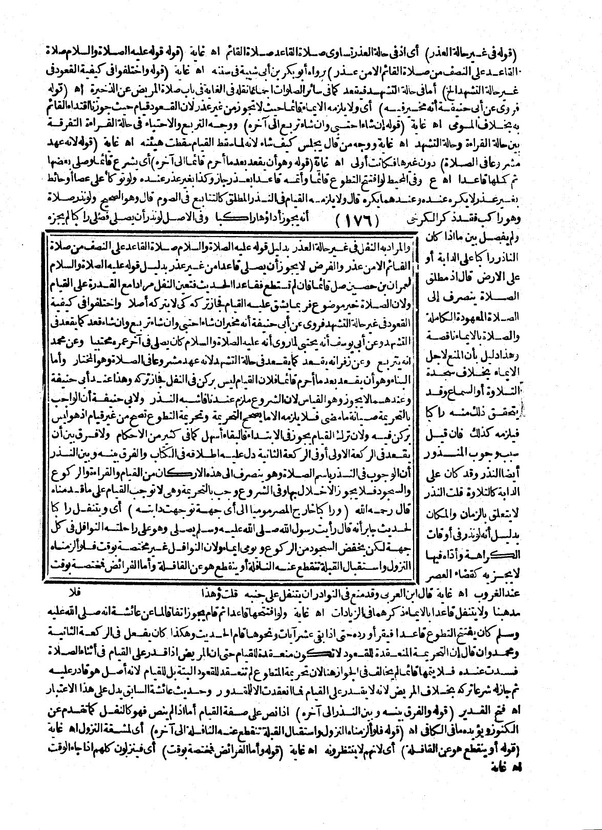 ـــــــــــــــــــــــــــــQقَوْلُهُ فِي غَيْرِ حَالَةِ الْعُذْرِ) أَيْ إذْ فِي حَالَةِ الْعُذْرِ تُسَاوِي صَلَاةُ الْقَاعِدِ صَلَاةَ الْقَائِمِ. اهـ. غَايَةٌ (قَوْلُهُ - عَلَيْهِ الصَّلَاةُ وَالسَّلَامُ - «صَلَاةُ الْقَاعِدِ عَلَى النِّصْفِ مِنْ صَلَاةِ الْقَائِمِ إلَّا مِنْ عُذْرٍ») رَوَاهُ أَبُو بَكْرِ بْنُ أَبِي شَيْبَةَ فِي سُنَنِهِ اهـ غَايَةٌ قَوْلُهُ وَاخْتَلَفُوا فِي كَيْفِيَّةِ الْقُعُودِ فِي غَيْرِ حَالَةِ التَّشَهُّدِ إلَخْ) أَمَّا فِي حَالَةِ التَّشَهُّدِ فَيَقْعُدُ كَمَا فِي سَائِرِ الصَّلَوَاتِ إجْمَاعًا نَقَلَهُ فِي الْغَايَةِ فِي بَابِ صَلَاةِ الْمَرِيضِ عَنْ الذَّخِيرَةِ. اهـ. (قَوْلُهُ فَرُوِيَ عَنْ أَبِي حَنِيفَةَ أَنَّهُ مُخَيَّرٌ فِيهِ) أَيْ وَلَا يَلْزَمُهُ الْإِيمَاءُ قَائِمًا حَيْثُ لَا تَجُوزُ مِنْ غَيْرِ عُذْرٍ؛ لِأَنَّ الْقُعُودَ قِيَامٌ حَيْثُ جَوَّزْنَا اقْتِدَاءَ الْقَائِمِ بِهِ بِخِلَافِ الْمُومِئِ. اهـ. غَايَةٌ قَوْلُهُ إنْ شَاءَ احْتَبَى وَإِنْ شَاءَ تَرَبَّعَ إلَى آخِرِهِ وَوَجْهُ التَّرَبُّعِ وَالِاحْتِبَاءِ فِي حَالَةِ الْقِرَاءَةِ التَّفْرِقَةُ بَيْنَ حَالَةِ الْقِرَاءَةِ وَحَالَةِ التَّشَهُّدِ. اهـ. غَايَةٌ وَوَجْهُ مَنْ قَالَ يَجْلِسُ كَيْفَ شَاءَ؛ لِأَنَّهُ لَمَّا سَقَطَ الْقِيَامُ سَقَطَتْ هَيْئَتُهُ. اهـ. غَايَةٌ (قَوْلُهُ: لِأَنَّهُ عَهِدَ مَشْرُوعًا فِي الصَّلَاةِ) دُونَ غَيْرِهَا فَكَانَتْ أَوْلَى. اهـ. غَايَةٌ (قَوْلُهُ وَهُوَ أَنْ يَقْعُدَ بَعْدَمَا أَحْرَمَ قَائِمًا إلَى آخِرِهِ) أَيْ يَشْرَعَ قَائِمًا وَصَلَّى بَعْضَهَا، ثُمَّ كَمَّلَهَا قَاعِدًا اهـ ع وَفِي الْمُحِيطِ لَوْ افْتَتَحَ التَّطَوُّعَ قَائِمًا وَأَتَمَّهُ قَاعِدًا بِعُذْرٍ جَازَ وَكَذَا بِغَيْرِ عُذْرٍ عِنْدَهُ وَلَوْ تَوَكَّأَ عَلَى عَصًا أَوْ حَائِطٍ بِغَيْرِ عُذْرٍ لَا يُكْرَهُ عِنْدَهُ وَعِنْدَهُمَا يُكْرَهُ قَالَ وَلَا يَلْزَمُهُ الْقِيَامُ فِي النَّذْرِ الْمُطْلَقِ كَالتَّتَابُعِ فِي الصَّوْمِ قَالَ وَهُوَ الصَّحِيحُ وَلَوْ نَذَرَ صَلَاةً وَهُوَ رَاكِبٌ فَقَدْ ذَكَرَ الْكَرْخِيُّ أَنَّهُ يَجُوزُ أَدَاؤُهَا رَاكِبًا وَفِي الْأَصْلِ لَوْ نَذَرَ أَنْ يُصَلِّيَ فَصَلَّى رَاكِبًا وَفِي الْأَصْلِ لَوْ نَذَرَ أَنْ يُصَلِّيَ فَصَلَّى رَاكِبًا لَمْ يُجْزِهِ، وَلَمْ يَفْصِلْ بَيْنَ مَا إذَا كَانَ النَّاذِرُ رَاكِبًا عَلَى الدَّابَّةِ أَوْ عَلَى الْأَرْضِ قَالَ إذْ مُطْلَقُ الصَّلَاةِ يَنْصَرِفُ إلَى الصَّلَاةِ الْمَعْهُودَةِ الْكَامِلَةِ وَالصَّلَاةُ بِالْإِيمَاءِ نَاقِصَةٌ وَهَذَا دَلِيلٌ بِأَنَّ الْمَنْعَ لِأَجْلِ الْإِيمَاءِ بِخِلَافِ سَجْدَةِ التِّلَاوَةِ أَوْ السَّمَاعِ وَقَدْ يَتَحَقَّقُ ذَلِكَ مِنْهُ رَاكِبًا فَيَلْزَمُهُ كَذَلِكَ فَإِنْ قِيلَ سَبَبُ وُجُوبِ الْمَنْذُورِ أَيْضًا النَّذْرَ وَقَدْ كَانَ عَلَى الدَّابَّةِ كَالتِّلَاوَةِ قُلْت النَّذْرُ لَا يَتَعَلَّقُ بِالزَّمَانِ وَالْمَكَانِ بِدَلِيلِ أَنَّهُ لَوْ نَذَرَ فِي أَوْقَاتِ الْكَرَاهَةِ وَأَدَّاهُ فِيهَا لَا يُجْزِيه كَقَضَاءِ الْعَصْرِ عِنْدَ الْغُرُوبِ. اهـ. غَايَةٌ قَالَ ابْنُ الْعَرَبِيِّ وَقَدْ مَنَعَ فِي النَّوَادِرِ أَنْ يَتَنَفَّلَ عَلَى جَنْبِهِ قُلْت وَهَذَا مَذْهَبُنَا وَلَا يَتَنَفَّلُ قَاعِدًا بِالْإِيمَاءِ ذَكَرَهُمَا فِي الزِّيَادَاتِ. اهـ. غَايَةٌ وَلَوْ افْتَتَحَهَا قَاعِدًا، ثُمَّ قَامَ يَجُوزُ اتِّفَاقًا لِمَا عَنْ عَائِشَةَ أَنَّهُ - صَلَّى اللَّهُ عَلَيْهِ وَسَلَّمَ - «كَانَ يَفْتَتِحُ التَّطَوُّعَ قَاعِدًا فَيَقْرَأُ وِرْدَهُ حَتَّى إذَا بَقِيَ عَشْرُ آيَاتٍ وَنَحْوُهَا قَامَ» الْحَدِيثَ، وَهَكَذَا كَانَ يَفْعَلُ فِي الرَّكْعَةِ الثَّانِيَةِ وَمُحَمَّ