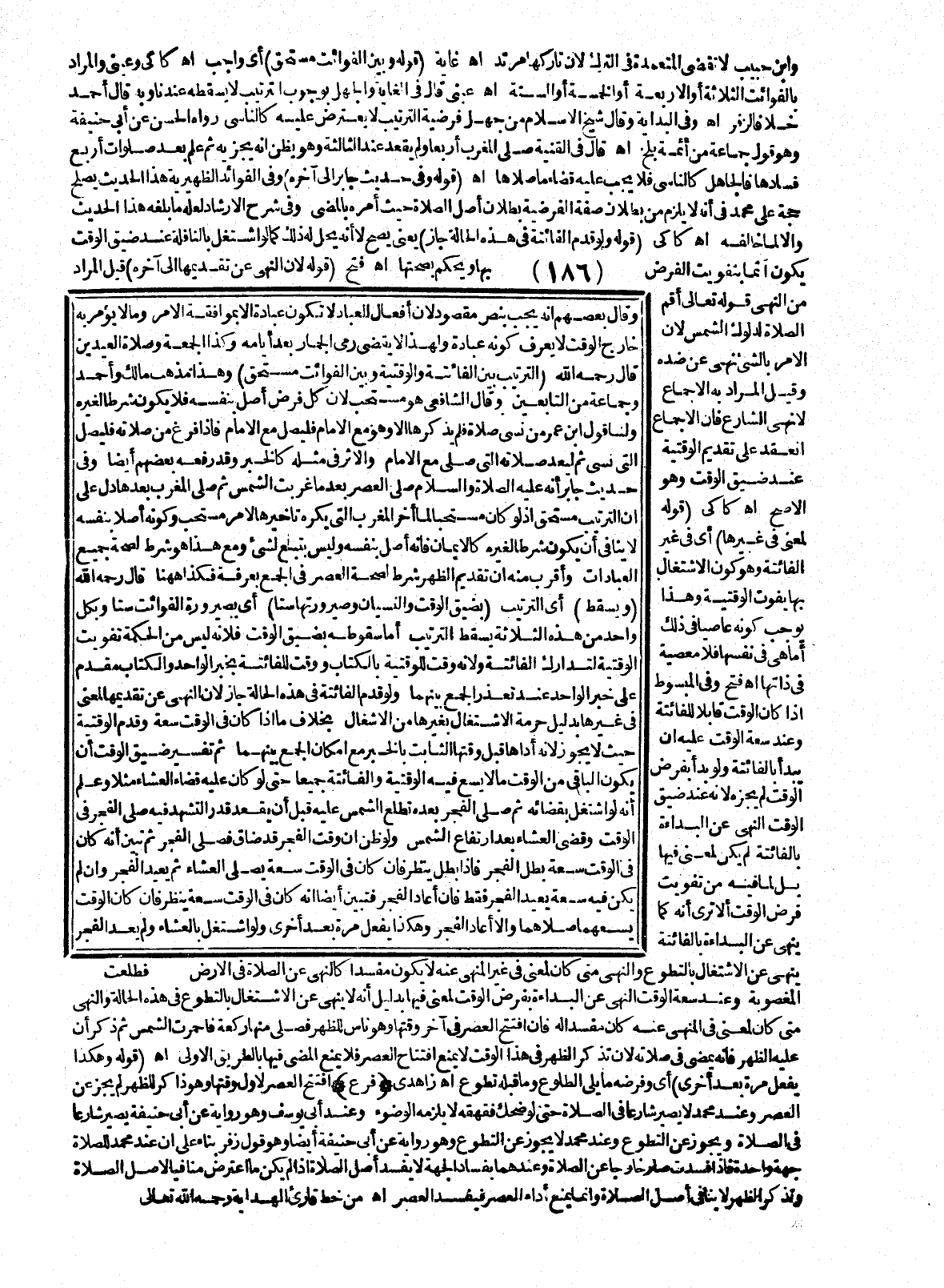 قَالَ - رَحِمَهُ اللَّهُ - (وَيَسْقُطُ) أَيْ التَّرْتِيبُ (بِضِيقِ الْوَقْتِ وَالنِّسْيَانِ وَصَيْرُورَتِهَا سِتًّا) أَيْ بِصَيْرُورَةِ الْفَوَائِتِ سِتًّا وَبِكُلِّ وَاحِدٍ مِنْ هَذِهِ الثَّلَاثَةِ يَسْقُطُ التَّرْتِيبُ أَمَّا سُقُوطُهُ بِضِيقِ الْوَقْتِ؛ فَلِأَنَّهُ لَيْسَ مِنْ الْحِكْمَةِ تَفْوِيتُ الْوَقْتِيَّةِ لِتَدَارُكِ الْفَائِتَةِ وَلِأَنَّهُ وَقْتَ لِلْوَقْتِيَّةِ بِالْكِتَابِ وَوُقِّتَ لِلْفَائِتَةِ بِخَبَرِ الْوَاحِدِ، وَالْكِتَابُ مُقَدَّمٌ عَلَى خَبَرِ الْوَاحِدِ عِنْدَ تَعَذُّرِ الْجَمْعِ بَيْنَهُمَا، وَلَوْ قَدَّمَ الْفَائِتَةَ فِي هَذِهِ الْحَالَةِ جَازَ؛ لِأَنَّ النَّهْيَ عَنْ تَقْدِيمِهَا لِمَعْنًى فِي غَيْرِهَا بِدَلِيلِ حُرْمَةِ الِاشْتِغَالِ بِغَيْرِهَا مِنْ الْأَشْغَالِ بِخِلَافِ مَا إذَا كَانَ فِي الْوَقْتِ سَعَةٌ وَقَدَّمَ الْوَقْتِيَّةَ حَيْثُ لَا يَجُوزُ؛ لِأَنَّهُ أَدَّاهَا قَبْلَ وَقْتِهَا الثَّابِتِ بِالْخَبَرِ مَعَ إمْكَانِ الْجَمْعِ بَيْنَهُمَا ثُمَّ تَفْسِيرُ ضِيقِ الْوَقْتِ أَنْ يَكُونَ الْبَاقِي مِنْ الْوَقْتِ مَا لَا يَسَعُ فِيهِ الْوَقْتِيَّةَ وَالْفَائِتَةَ جَمِيعًا حَتَّى لَوْ كَانَ عَلَيْهِ قَضَاءُ الْعِشَاءِ مَثَلًا وَعَلِمَ أَنَّهُ لَوْ اشْتَغَلَ بِقَضَائِهِ ثُمَّ صَلَّى الْفَجْرَ بَعْدَهُ تَطْلُعُ الشَّمْسُ عَلَيْهِ قَبْلَ أَنْ يَعْقِدَ قَدْرَ التَّشَهُّدِ فِيهِ صَلَّى الْفَجْرَ فِي الْوَقْتِ وَقَضَى الْعِشَاءَ بَعْدَ ارْتِفَاعِ الشَّمْسِ. وَلَوْ ظَنَّ أَنَّ وَقْتَ الْفَجْرِ قَدْ ضَاقَ فَصَلَّى الْفَجْرَ ثُمَّ تَبَيَّنَ أَنَّهُ كَانَ فِي الْوَقْتِ سَعَةٌ بَطَلَ الْفَجْرُ فَإِذَا بَطَلَ يَنْظُرُ فَإِنْ كَانَ فِي الْوَقْتِ سَعَةٌ يُصَلِّي الْعِشَاءَ ثُمَّ يُعِيدُ الْفَجْرَ، وَإِنْ لَمْ يَكُنْ فِيهِ سَعَةٌ يُعِيدُ الْفَجْرَ فَقَطْ فَإِنْ أَعَادَ الْفَجْرَ فَتَبَيَّنَ أَيْضًا أَنَّهُ كَانَ فِي الْوَقْتِ سَعَةٌ يَنْظُرُ فَإِنْ كَانَ الْوَقْتُ يَسَعُهُمَا صَلَّاهُمَا وَإِلَّا أَعَادَ الْفَجْرَ وَهَكَذَا يَفْعَلُ مَرَّةً بَعْدَ أُخْرَى، وَلَوْ اشْتَغَلَ بِالْعِشَاءِ وَلَمْ يُعِدْ الْفَجْرَ