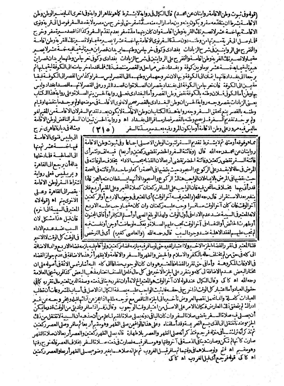 ـــــــــــــــــــــــــــــ Q ( قَوْلُهُ وَفِي ثُبُوتِ وَطَنِ الْإِقَامَةِ رِوَايَتَانِ عَنْ مُحَمَّدٍ) قَالَ الْكَمَالُ فِي رِوَايَةٍ لَا يُشْتَرَطُ كَمَا هُوَ ظَاهِرُ الرِّوَايَةِ، وَفِي أُخْرَى إنَّمَا يَصِيرُ الْوَطَنُ وَطَنَ الْإِقَامَةِ بِشَرْطِ أَنْ يَتَقَدَّمَهُ سَفَرٌ وَيَكُونُ بَيْنَهُ وَبَيْنَ مَا صَارَ إلَيْهِ مِنْهُ مُدَّةُ سَفَرٍ حَتَّى لَوْ خَرَجَ مِنْ مِصْرِهِ لَا بِقَصْدِ السَّفَرِ فَوَصَلَ إلَى قَرْيَةٍ وَنَوَى الْإِقَامَةَ بِهَا خَمْسَةَ عَشَرَ لَا تَصِيرُ تِلْكَ الْقَرْيَةُ وَطَنَ إقَامَةٍ، وَإِنْ كَانَ بَيْنَهُمَا مُدَّةُ سَفَرٍ بِعَدَمِ تَقَدُّمِ السَّفَرِ، وَكَذَا إذَا قَصَدَ مَسِيرَةَ سَفَرٍ وَخَرَجَ فَلَمَّا وَصَلَ إلَى قَرْيَةٍ مَسِيرَتُهَا مِنْ وَطَنِهِ دُونَ مُدَّةِ السَّفَرِ نَوَى الْإِقَامَةَ بِهَا خَمْسَةَ عَشَرَ لَا يَصِيرُ مُقِيمًا وَلَا تَصِيرُ تِلْكَ الْقَرْيَةُ وَطَنَ إقَامَةٍ وَالتَّخَرُّجُ عَلَى الرِّوَايَتَيْنِ فِي شَرْحِ الزِّيَادَاتِ بَغْدَادِيٌّ وَكُوفِيٌّ خَرَجَا مِنْ وَطَنِهِمَا يُرِيدَانِ قَصْرَ ابْنِ هُبَيْرَةَ لِيُقِيمَا فِيهِ خَمْسَةَ عَشَرَ يَوْمًا وَبَيْنَ كُوفَةَ وَبَغْدَادَ خَمْسُ مَرَاحِلَ وَالْقَصْرُ مُنْتَصَفُ ذَلِكَ فَلَمَّا قَدِمَاهُ خَرَجَا مِنْهُ إلَى الْكُوفَةِ لِيُقِيمَا بِهَا ثُمَّ يَرْجِعَا إلَى بَغْدَادَ فَإِنَّهُمَا يُتِمَّانِ إلَى الْكُوفَةِ وَبِهَا؛ لِأَنَّ خُرُوجَهُمَا مِنْ وَطَنِهِمَا إلَى الْقَصْرِ لَيْسَ سَفَرًا، وَكَذَا مِنْ الْقَصْرِ إلَى الْكُوفَةِ فَبَقِيَا مُقِيمَيْنِ إلَى الْكُوفَةِ فَإِنْ خَرَجَا مِنْ الْكُوفَةِ إلَى بَغْدَادَ يَقْصُرَانِ الصَّلَاةَ، وَإِنْ قَصَدَا الْمُرُورَ عَلَى الْقَصْرِ؛ لِأَنَّهُمَا قَصَدَا بَغْدَادَ وَلَيْسَ بِهَا وَطَنٌ أَمَّا الْكُوفِيُّ فَلِأَنَّ وَطَنَهُ بِالْكُوفَةِ نَقَضَ وَطَنَ الْقَصْرِ.