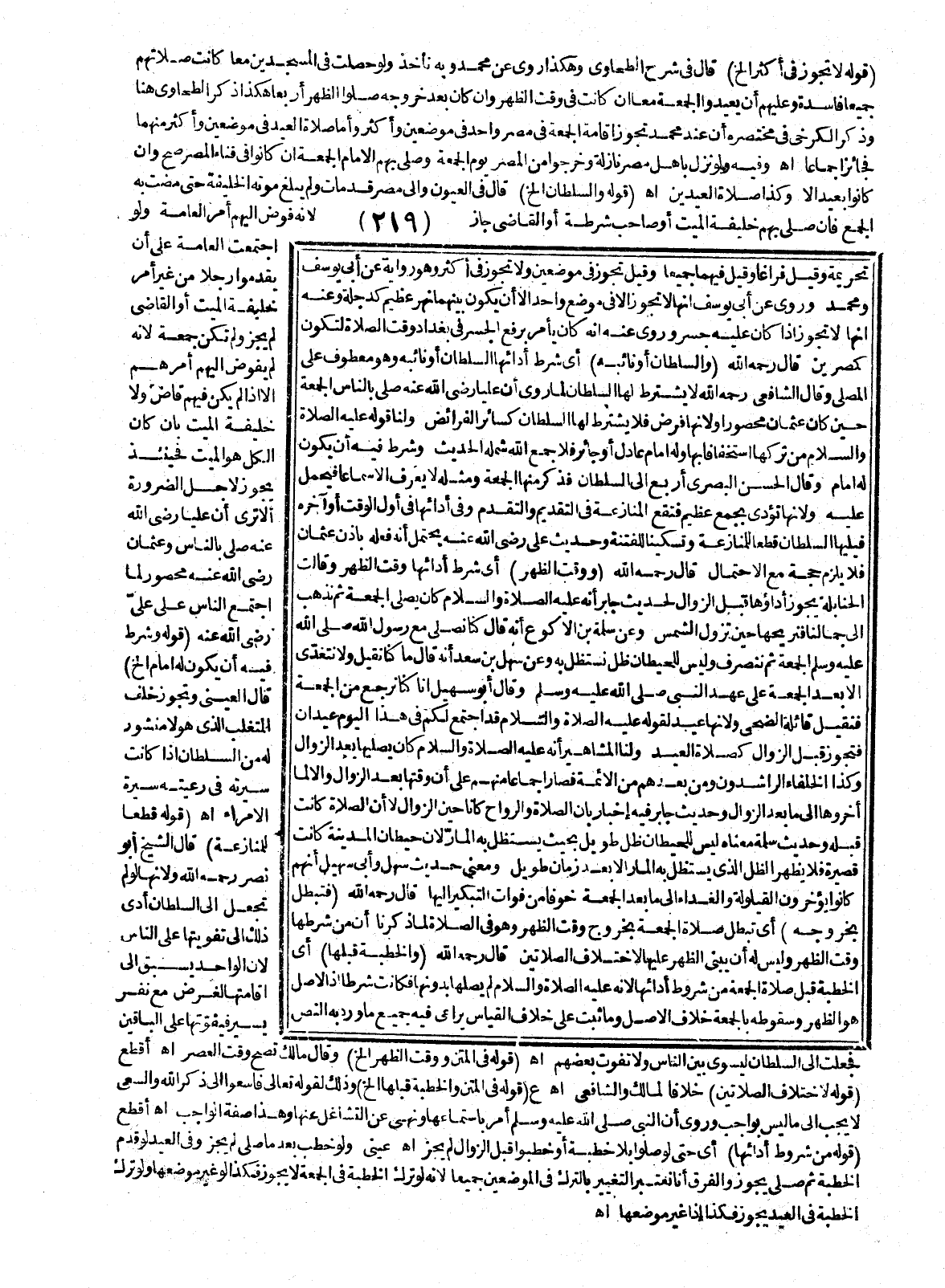 ـــــــــــــــــــــــــــــQقَوْلُهُ لَا تَجُوزُ فِي أَكْثَرَ إلَخْ) قَالَ فِي شَرْحِ الطَّحَاوِيِّ وَهَكَذَا رُوِيَ عَنْ مُحَمَّدٍ وَبِهِ نَأْخُذُ، وَلَوْ حَصَلَتْ فِي الْمَسْجِدَيْنِ مَعًا كَانَتْ صَلَاتُهُمْ جَمِيعًا فَاسِدَةً وَعَلَيْهِمْ أَنْ يُعِيدُوا الْجُمُعَةَ مَعًا إنْ كَانَتْ فِي وَقْتِ الظُّهْرِ، وَإِنْ كَانَ بَعْدَ خُرُوجِهِ صَلَّوْا الظُّهْرَ أَرْبَعًا هَكَذَا ذَكَرَ الطَّحْطَاوِيُّ هُنَا وَذَكَرَ الْكَرْخِيُّ فِي مُخْتَصَرِهِ أَنَّ عِنْدَ مُحَمَّدٍ تَجُوزُ إقَامَةُ الْجُمُعَةِ فِي مِصْرٍ وَاحِدٍ فِي مَوْضِعَيْنِ وَأَكْثَرَ وَأَمَّا صَلَاةُ الْعِيدِ فِي مَوْضِعَيْنِ وَأَكْثَرَ مِنْهُمَا فَجَائِزٌ إجْمَاعًا. اهـ. وَفِيهِ وَلَوْ نَزَلَ بِأَهْلِ مِصْرٍ نَازِلَةٌ وَخَرَجُوا مِنْ الْمِصْرِ يَوْمَ الْجُمُعَةِ وَصَلَّى بِهِمْ الْإِمَامُ الْجُمُعَةَ إنْ كَانُوا فِي فِنَاءِ الْمِصْرِ صَحَّ، وَإِنْ كَانُوا بَعِيدًا لَا وَكَذَا صَلَاةُ الْعِيدَيْنِ. اهـ. .