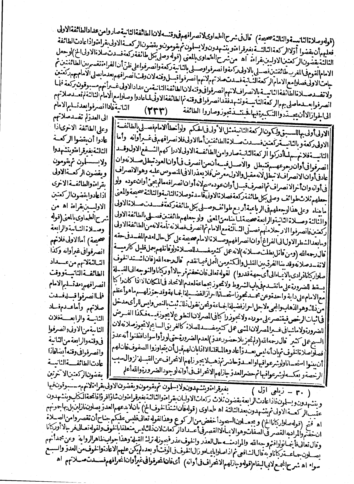 ـــــــــــــــــــــــــــــQقَوْلُهُ: وَصَلَاةُ الثَّانِيَةِ وَالثَّالِثَةِ صَحِيحَةٌ) قَالَ فِي شَرْحِ الطَّحَاوِيِّ لِانْصِرَافِهِمْ فِي وَقْتِهِ؛ لِأَنَّ الطَّائِفَةَ الثَّانِيَةَ صَارُوا مِنْ عِدَادِ الطَّائِفَةِ الْأُولَى فَعَلَيْهِمْ أَنْ يَقْضُوا أَوَّلًا الرَّكْعَةَ الثَّالِثَةَ بِغَيْرِ قِرَاءَةٍ وَيَتَشَهَّدُونَ، وَلَا يُسَلِّمُونَ ثُمَّ يَقُومُونَ وَيَقْضُونَ الرَّكْعَةَ الْأُولَى بِقِرَاءَةٍ، وَإِذَا عَادَتْ الطَّائِفَةُ الثَّالِثَةُ يَقْضُونَ الرَّكْعَتَيْنِ الْأُولَيَيْنِ بِقِرَاءَةٍ. اهـ مِنْ شَرْحِ الطَّحَاوِيِّ بِالْمَعْنَى.