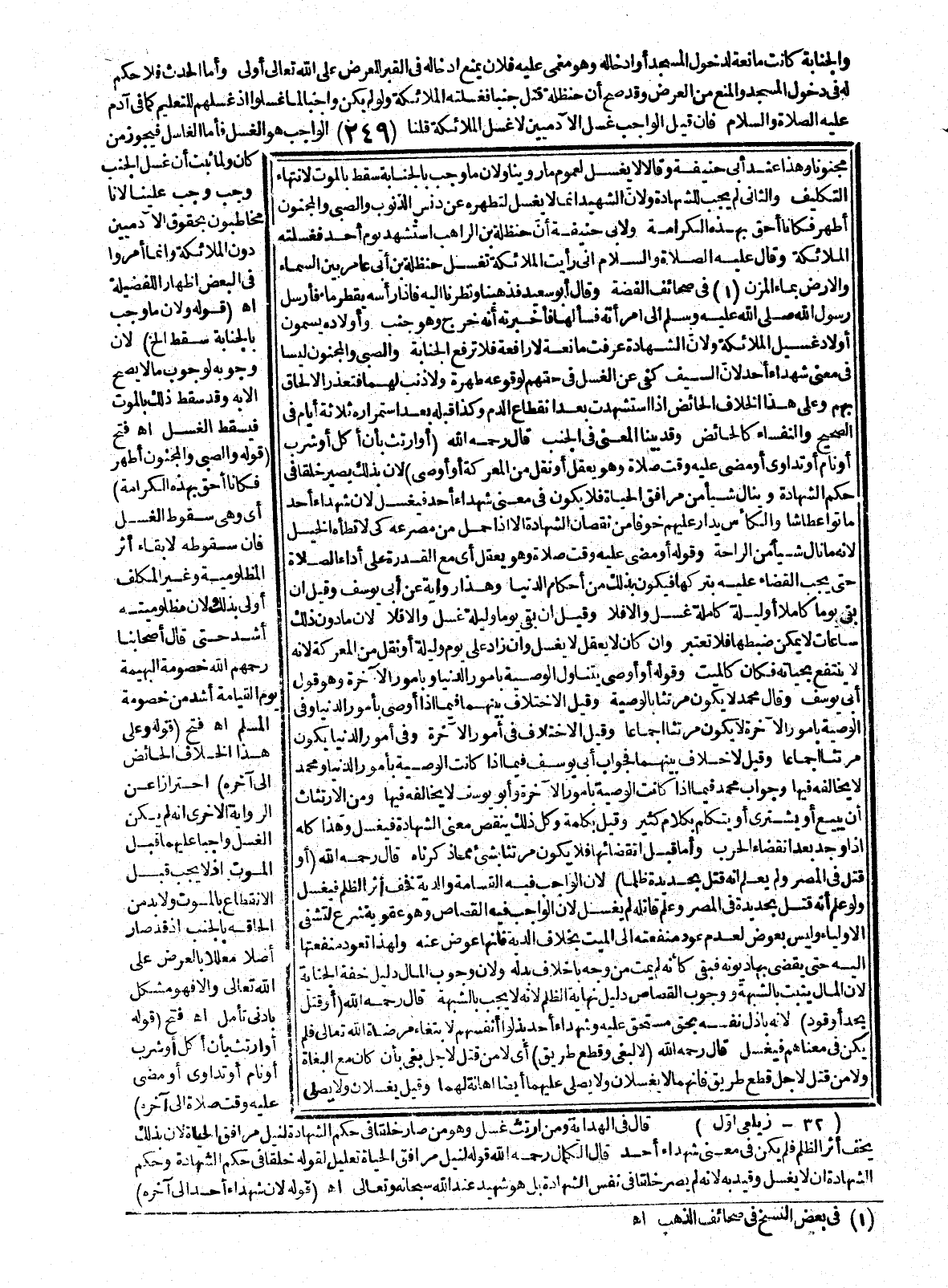 مَجْنُونًا، وَهَذَا عِنْدَ أَبِي حَنِيفَةَ، وَقَالَا لَا يُغَسَّلُ لِعُمُومِ مَا رَوَيْنَا؛ وَلِأَنَّ مَا وَجَبَ بِالْجَنَابَةِ سَقَطَ بِالْمَوْتِ لِانْتِهَاءِ التَّكْلِيفِ وَالثَّانِي لَمْ يَجِبْ لِلشَّهَادَةِ؛ وَلِأَنَّ الشَّهِيدَ إنَّمَا لَا يُغَسَّلُ لِتَطَهُّرِهِ عَنْ دَنَسِ الذُّنُوبِ، وَالصَّبِيُّ وَالْمَجْنُونُ أَطْهَرُ فَكَانَا أَحَقَّ بِهَذِهِ الْكَرَامَةِ وَلِأَبِي حَنِيفَةَ أَنَّ حَنْظَلَةَ بْنَ الرَّاهِبِ اُسْتُشْهِدَ يَوْمَ أُحُدٍ فَغَسَّلَتْهُ الْمَلَائِكَةُ، وَقَالَ - عَلَيْهِ الصَّلَاةُ وَالسَّلَامُ - «إنِّي رَأَيْتُ الْمَلَائِكَةَ تُغَسِّلُ حَنْظَلَةَ بْنَ أَبِي عَامِرٍ بَيْنَ السَّمَاءِ وَالْأَرْضِ بِمَاءِ الْمُزْنِ فِي صَحَائِفِ الْفِضَّةِ».