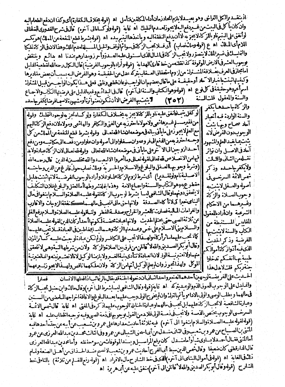 قَالَ شَمْسُ الْأَئِمَّةِ السَّرَخْسِيُّ: الْوُجُوبُ يَخْتَصُّ بِالذِّمَّةِ، وَلَا تَجِبُ فِي ذِمَّةِ الْوَلِيِّ فَلَا بُدَّ مِنْ الْقَوْلِ بِوُجُوبِهَا فِي ذِمَّةِ الصَّبِيِّ، وَفِيهِ تَوْجِيهُ الْخِطَابِ عَلَيْهِ. اهـ. غَايَةٌ (قَوْلُهُ: لِقَوْلِهِ - عَلَيْهِ الصَّلَاةُ وَالسَّلَامُ - «ابْتَغُوا» إلَى آخِرِهِ) فِيهِ ثَلَاثَةُ أَحَادِيثَ مَدَارُهَا عَلَى عَمْرِو بْنِ شُعَيْبٍ عَنْ أَبِيهِ عَنْ جَدِّهِ أَحَدُهَا فِيهِ الْمُثَنَّيْ بْنِ الصَّبَّاحِ عَنْ عَمْرِو بْنِ شُعَيْبٍ، وَفِي الثَّانِي مَنْدَلٌ عَنْ أَبِي إِسْحَاقَ الشَّيْبَانِيِّ عَنْ عَمْرٍو وَفِي الثَّالِثِ مُحَمَّدُ بْنُ عَبْدِ اللَّهِ الْعَرْزَمِيُّ عَنْ عَمْرٍو أَمَّا الْمُثَنَّى فَقَالَ أَحْمَدُ لَا يُسَاوِي شَيْئًا، وَأَمَّا مَنْدَلٌ كَانَ يَرْفَعُ الْمَرَاسِيلَ وَيُسْنِدُ الْمَوْقُوفَاتِ مِنْ سُوءِ حِفْظِهِ، وَأَمَّا مُحَمَّدُ بْنُ عَبْدِ اللَّهِ الْعَرْزَمِيُّ قَالَ الدَّارَقُطْنِيّ كَانَ ضَعِيفًا، وَقَالَ شَمْسُ الدِّينِ سِبْطِ أَبِي الْفَرَجِ أَحَادِيثُ عَمْرِو بْنِ شُعَيْبٍ لَا تَصِحُّ عِنْدَ الْحُذَّاقِ مِنْ أَهْلِ الصَّنْعَةِ وَتَمَامُ ذَلِكَ فِي الْغَايَةِ. اهـ. (قَوْلُهُ: فِي أَمْوَالِ الْيَتَامَى إلَى آخِرِهِ) الَّذِي فِي خَطِّ الشَّارِحِ مَالِ بِالْأَفْرَادِ. اهـ. (قَوْلُهُ: «رُفِعَ الْقَلَمُ عَنْ ثَلَاثَةٍ») بِالتَّاءِ فِي خَطِّ الشَّارِحِ (قَوْلُهُ:، وَقَالَ أَبُو بَكْرٍ الصِّدِّيقُ وَاَللَّهِ لَأُقَاتِلَنَّ إلَى آخِرِهِ) مُتَّفَقٌ عَلَيْهِ عَنْ أَبِي هُرَيْرَةَ. اهـ.
