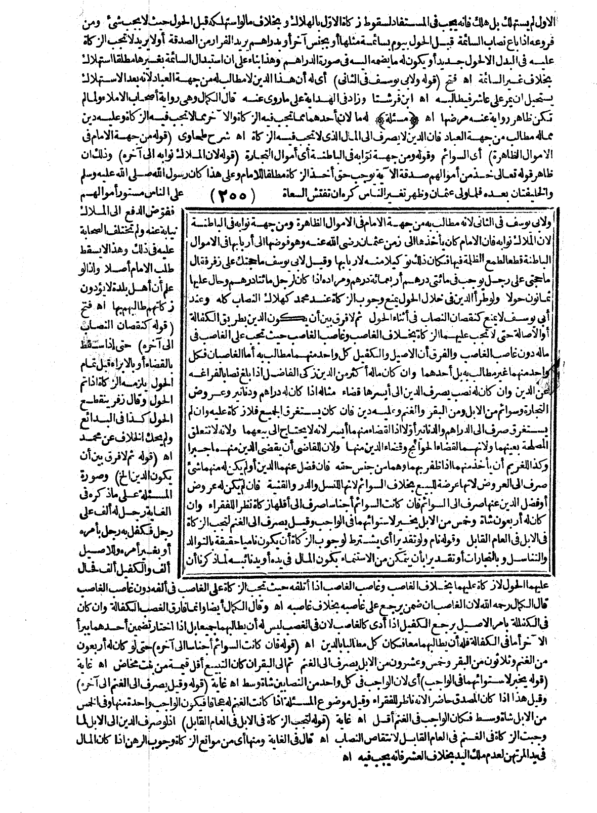 (مَسْأَلَةٌ) لَهُ مَالَانِ أَحَدُهُمَا مِمَّا تَجِبُ فِيهِ الزَّكَاةُ وَالْآخَرُ مِمَّا لَا تَجِبُ فِيهِ الزَّكَاةُ، وَعَلَيْهِ دَيْنٌ مِمَّا لَهُ مُطَالِبٌ مِنْ جِهَةِ الْعِبَادِ فَإِنَّ الدَّيْنَ لَا يُصْرَفُ إلَى الْمَالِ الَّذِي لَا تَجِبُ فِيهِ الزَّكَاةُ. اهـ. شَرْحٌ طَحَاوِيٍّ (قَوْلُهُ: مِنْ جِهَةِ الْإِمَامِ فِي الْأَمْوَالِ الظَّاهِرَةِ) أَيْ السَّوَائِمِ، وَقَوْلُهُ وَمِنْ جِهَةِ نُوَّابِهِ فِي الْبَاطِنَةِ أَيْ أَمْوَالِ التِّجَارَةِ (قَوْلُهُ:؛ لِأَنَّ الْمُلَّاكَ نُوَّابُهُ إلَى آخِرِهِ) وَذَلِكَ أَنَّ ظَاهِرَ قَوْله تَعَالَى {خُذْ مِنْ أَمْوَالِهِمْ صَدَقَةً} [التوبة: 103] الْآيَةَ يُوجِبُ حَقَّ أَخْذِ الزَّكَاةِ مُطْلَقًا لِلْإِمَامِ، وَعَلَى هَذَا «كَانَ رَسُولُ اللَّهِ - صَلَّى اللَّهُ عَلَيْهِ وَسَلَّمَ - وَالْخَلِيفَتَانِ بَعْدَهُ فَلَمَّا وُلِّيَ عُثْمَانُ وَظَهَرَ تَغَيُّرُ النَّاسِ كَرِهَ أَنْ تُفَتِّشَ السُّعَاةُ عَلَى النَّاسِ مَسْتُورَ أَمْوَالِهِمْ فَفَوَّضَ الدَّفْعَ إلَى الْمُلَّاكِ نِيَابَةً عَنْهُ»، وَلَمْ تَخْتَلِفْ الصَّحَابَةُ عَلَيْهِ فِي ذَلِكَ، وَهَذَا لَا يُسْقِطُ طَلَبَ الْإِمَامِ أَصْلًا وَلِذَا لَوْ عَلِمَ أَنَّ أَهْلَ بَلْدَةٍ لَا يُؤَدُّونَ زَكَاتَهُمْ طَالَبَهُمْ بِهَا. اهـ. فَتْحٌ (قَوْلُهُ: كَنُقْصَانِ النِّصَابِ إلَى آخِرِهِ) حَتَّى إذَا سَقَطَ بِالْقَضَاءِ أَوْ بِالْإِبْرَاءِ قَبْلَ تَمَامِ الْحَوْلِ يَلْزَمُهُ الزَّكَاةُ إذَا تَمَّ الْحَوْلُ، وَقَالَ زُفَرُ يَنْقَطِعُ الْحَوْلُ كَذَا فِي الْبَدَائِعِ، وَلَمْ يَحْكِ الْخِلَافَ عَنْ مُحَمَّدٍ. اهـ.