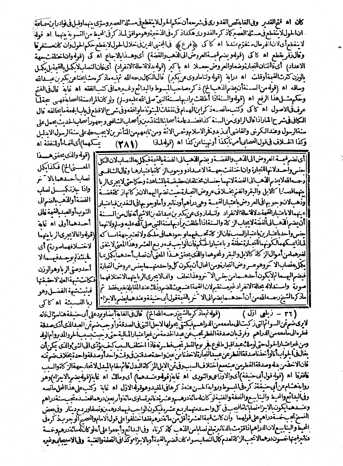 (قَوْلُهُ وَالسُّنَّةُ إذَا أُطْلِقَتْ يُرَادُ بِهَا سُنَّةُ النَّبِيِّ - صَلَّى اللَّهُ عَلَيْهِ وَسَلَّمَ -) وَلَوْ كَانَ الْمُرَادُ سُنَّةَ الصَّحَابَةِ فَهِيَ حُجَّةٌ لِمَا عُرِفَ فِي الْأُصُولِ. اهـ. كَاكِيٌّ وَكَتَبَ مَا نَصُّهُ ذَكَرَ ابْنُ الْهُمَامِ فِي نَفَقَاتِ الْمَبْتُوتَةِ مَا يُوَافِقُهُ وَفِي شَرْحِ الْأَقْطَعِ فِي بَابِ الْجُمُعَةِ مَا يُخَالِفُهُ قَالَ الْكَافِي فِي شَرْحِ الْمَنَارِ إذَا قَالَ الرَّاوِي مِنْ السُّنَّةِ كَذَا فَعِنْدَ عَامَّةِ أَصْحَابِنَا الْمُتَقَدِّمِينَ وَأَصْحَابِ الشَّافِعِيِّ وَجُمْهُورِ أَصْحَابِ الْحَدِيثِ يُحْمَلُ عَلَى سُنَّةِ الرَّسُولِ وَعِنْدَ الْكَرْخِيِّ وَالْقَاضِي أَبِي زَيْدٍ وَفَخْرِ الْإِسْلَامِ وَشَمْسِ الْأَئِمَّةِ وَمَنْ تَابَعَهُمْ مِنْ الْمُتَأَخِّرِينَ لَا يَجِبُ حَمْلُهُ عَلَى سُنَّةِ الرَّسُولِ إلَّا بِدَلِيلٍ وَكَذَا الْخِلَافُ فِي قَوْلِ الصَّحَابِيِّ أُمِرْنَا بِكَذَا أَوْ نُهِينَا عَنْ كَذَا اهـ (قَوْلُهُ لِمَاذَا يَمْسِكُهُمَا) أَيْ لِلنَّمَاءِ أَوْ لِلنَّفَقَةِ اهـ (قَوْلُهُ وَاَلَّذِي يُحَقِّقُ هَذَا الْمَعْنَى إلَخْ) فَكَذَا يُكْمِلُ نِصَابَ أَحَدِهِمَا بِالْآخِرِ وَإِذَا جَازَ تَكْمِيلُ نِصَابِ الْفِضَّةِ أَوْ الذَّهَبِ بِالضَّمِّ إلَى الثَّوْبِ أَوْ الْعَبْدِ بِالْقِيمَةِ فَإِلَى أَحَدِهِمَا أَوْلَى. اهـ. غَايَةٌ (قَوْلُهُ وَإِنَّمَا لَا يَجْرِي الرِّبَا بَيْنَهُمَا لِاخْتِلَافِهِمَا صُورَةً) أَيْ فَحِينَئِذٍ لَمْ يُوجَدْ فِيهِمَا إلَّا أَحَدُ وَصْفَيْ الرِّبَا وَهُوَ الْوَزْنُ فَكَانَتْ شُبْهَةُ الْعِلَّةِ لَا حَقِيقَتُهَا فَيَثْبُتُ شُبْهَةَ الْفَضْلِ وَهُوَ رِبَا النَّسِيئَةِ. اهـ. كَاكِيٌّ.