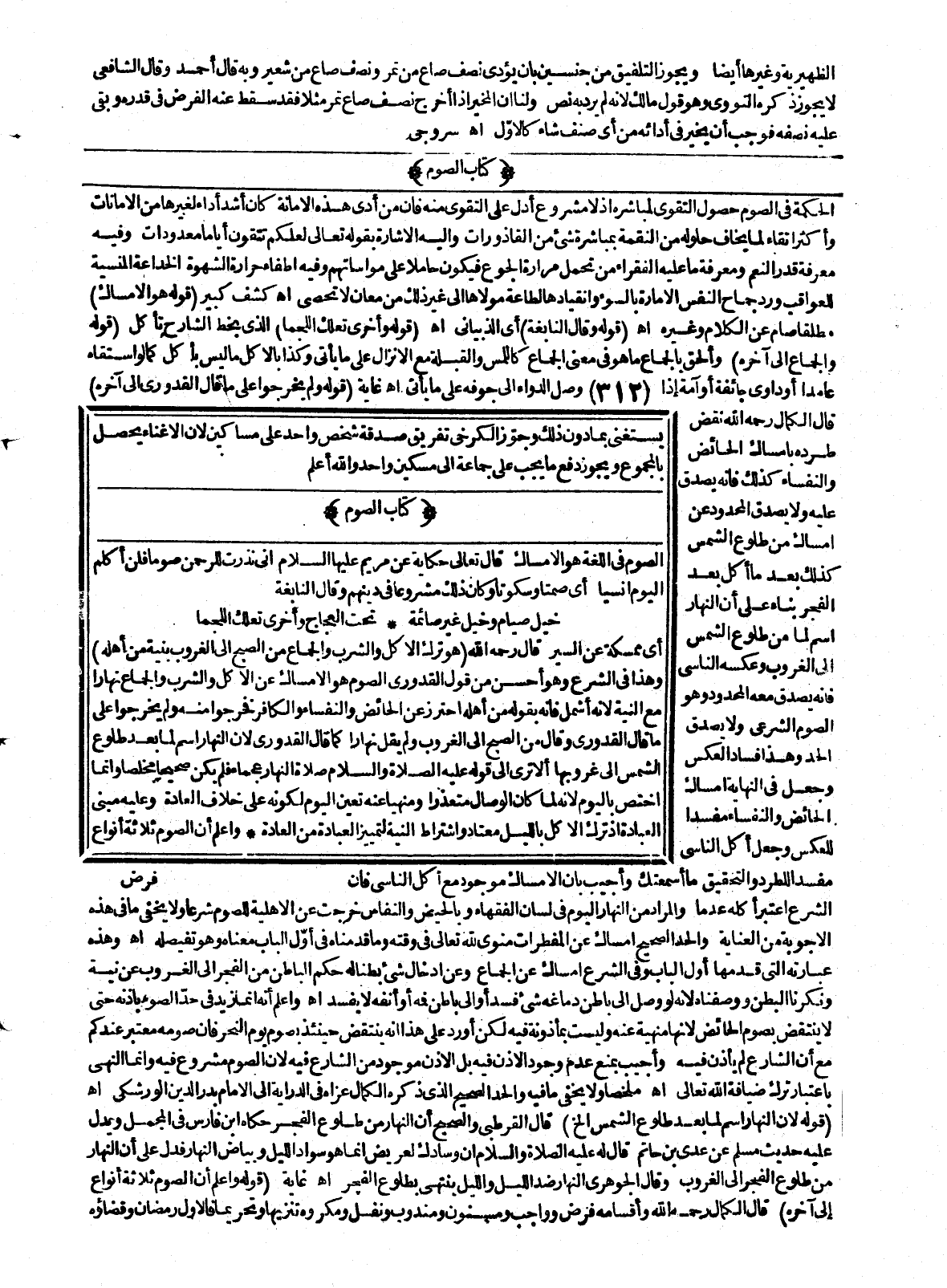 (كِتَابُ الصَّوْمِ) الصَّوْمُ فِي اللُّغَةِ هُوَ الْإِمْسَاكُ قَالَ تَعَالَى حِكَايَةً عَنْ مَرْيَمَ - عَلَيْهَا السَّلَامُ - {إِنِّي نَذَرْتُ لِلرَّحْمَنِ صَوْمًا فَلَنْ أُكَلِّمَ الْيَوْمَ إِنْسِيًّا} [مريم: 26] أَيْ صَمْتًا وَسُكُوتًا وَكَانَ ذَلِكَ مَشْرُوعًا فِي دِينِهِمْ وَقَالَ النَّابِغَةُ
