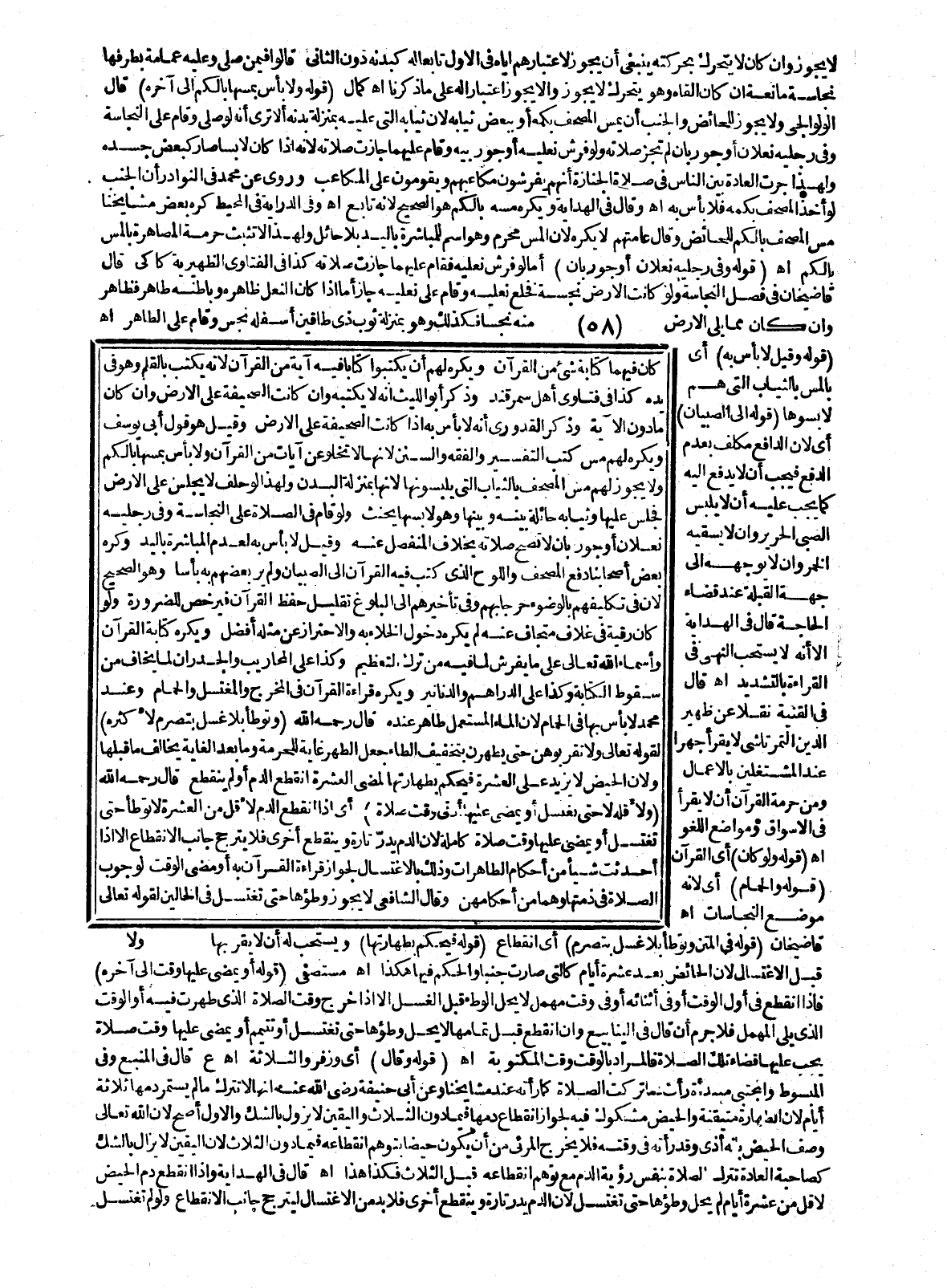 كَانَ فِيهِمَا كِتَابَةُ شَيْءٍ مِنْ الْقُرْآنِ وَيُكْرَهُ لَهُمْ أَنْ يَكْتُبُوا كِتَابًا فِيهِ آيَةٌ مِنْ الْقُرْآنِ؛ لِأَنَّهُ يُكْتَبُ بِالْقَلَمِ وَهُوَ فِي يَدِهِ كَذَا فِي فَتَاوَى أَهْلِ سَمَرْقَنْدَ وَذَكَرَ أَبُو اللَّيْثِ أَنَّهُ لَا يَكْتُبُهُ وَإِنْ كَانَتْ الصَّحِيفَةُ عَلَى الْأَرْضِ وَإِنْ كَانَ مَا دُونَ الْآيَةِ، وَذَكَرَ الْقُدُورِيُّ أَنَّهُ لَا بَأْسَ بِهِ إذَا كَانَتْ الصَّحِيفَةُ عَلَى الْأَرْضِ وَقِيلَ هُوَ قَوْلُ أَبِي يُوسُفَ وَيُكْرَهُ لَهُمْ مَسُّ كُتُبِ التَّفْسِيرِ وَالْفِقْهِ وَالسُّنَنِ؛ لِأَنَّهَا لَا تَخْلُو عَنْ آيَاتٍ مِنْ الْقُرْآنِ وَلَا بَأْسَ بِمَسِّهَا بِالْكُمِّ وَلَا يَجُوزُ لَهُمْ مَسُّ الْمُصْحَفِ بِالثِّيَابِ الَّتِي يَلْبَسُونَهَا؛ لِأَنَّهَا بِمَنْزِلَةِ الْبَدَنِ وَلِهَذَا لَوْ حَلَفَ لَا يَجْلِسُ عَلَى الْأَرْضِ فَجَلَسَ عَلَيْهَا وَثِيَابُهُ حَائِلَةٌ بَيْنَهُ وَبَيْنَهَا وَهُوَ لَابِسُهَا يَحْنَثُ، وَلَوْ قَامَ فِي الصَّلَاةِ عَلَى النَّجَاسَةِ وَفِي رِجْلَيْهِ نَعْلَانِ أَوْ جَوْرَبَانِ لَا تَصِحُّ صَلَاتُهُ بِخِلَافِ الْمُنْفَصِلِ عَنْهُ وَقِيلَ لَا بَأْسَ بِهِ لِعَدَمِ الْمُبَاشَرَةِ بِالْيَدِ وَكَرِهَ بَعْضُ أَصْحَابِنَا دَفْعَ الْمُصْحَفِ وَاللَّوْحِ الَّذِي كُتِبَ فِيهِ الْقُرْآنُ إلَى الصِّبْيَانِ وَلَمْ يَرَ بَعْضُهُمْ بِهِ بَأْسًا وَهُوَ الصَّحِيحُ؛ لِأَنَّ فِي تَكْلِيفِهِمْ بِالْوُضُوءِ حَرَجًا بِهِمْ وَفِي تَأْخِيرِهِمْ إلَى الْبُلُوغِ تَقْلِيلُ حِفْظِ الْقُرْآنِ فَيُرَخَّصُ لِلضَّرُورَةِ وَلَوْ كَانَ رُقْيَةً فِي غِلَافٍ مُتَجَافٍ عَنْهُ لَمْ يُكْرَهْ دُخُولُ الْخَلَاءِ بِهِ وَالِاحْتِرَازُ عَنْ مِثْلِهِ أَفْضَلُ وَيُكْرَهُ كِتَابَةُ الْقُرْآنِ وَأَسْمَاءِ اللَّهِ تَعَالَى عَلَى مَا يُفْرَشُ لِمَا فِيهِ مِنْ تَرْكِ التَّعْظِيمِ، وَكَذَا عَلَى الْمَحَارِيبِ وَالْجُدْرَانِ لِمَا يُخَافُ مِنْ سُقُوطِ الْكِتَابَةِ، وَكَذَا عَلَى الدَّرَاهِمِ وَالدَّنَانِيرِ وَيُكْرَهُ قِرَاءَةُ الْقُرْآنِ فِي الْمَخْرَجِ وَالْمُغْتَسَلِ وَالْحَمَّامِ وَعِنْدَ مُحَمَّدٍ لَا بَأْسَ بِهَا فِي الْحَمَّامِ؛ لِأَنَّ الْمَاءَ الْمُسْتَعْمَلَ طَاهِرٌ عِنْدَهُ.