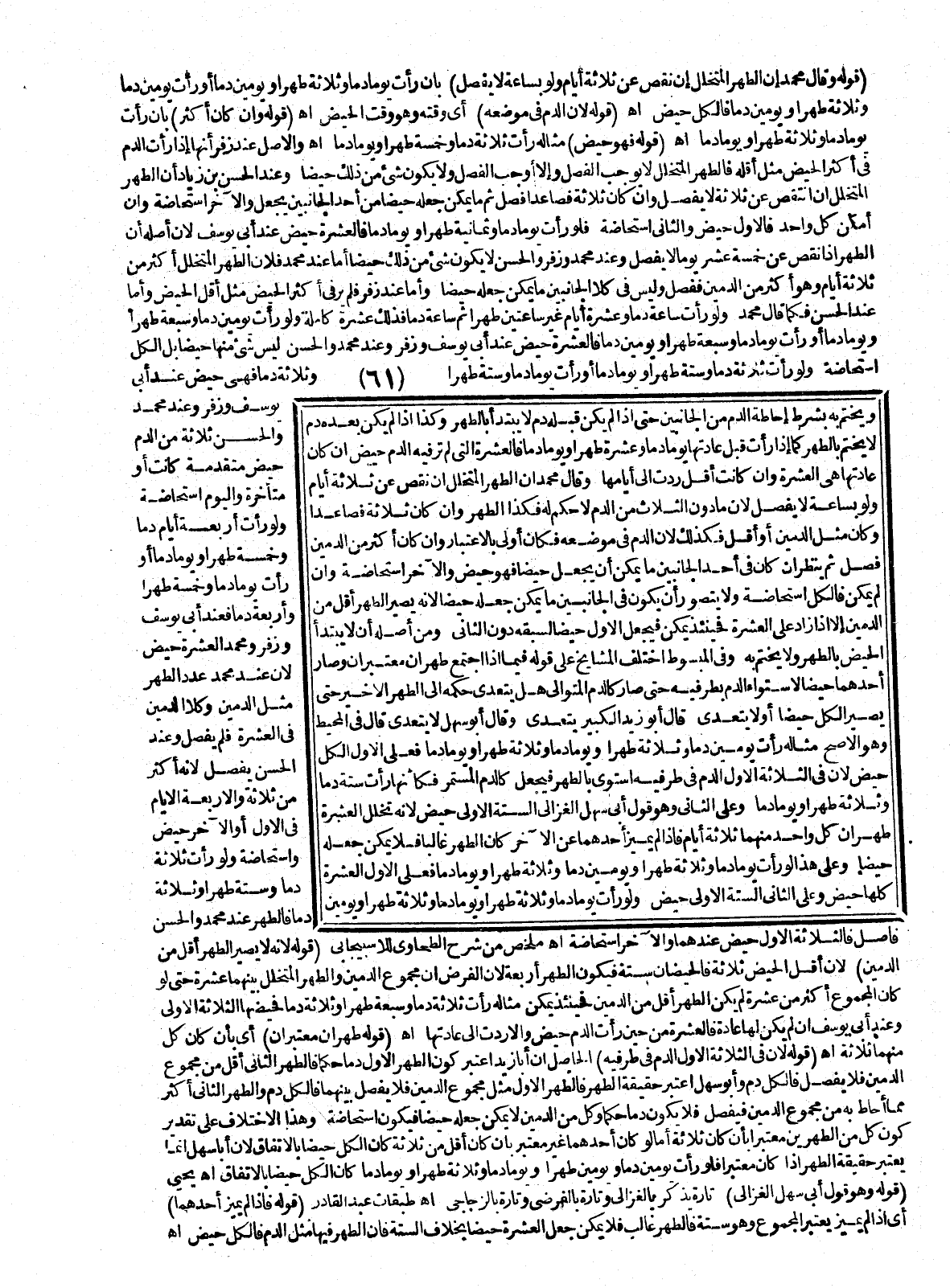وَمِنْ أَصْلِهِ أَنْ لَا يُبْتَدَأَ الْحَيْضُ بِالطُّهْرِ وَلَا يُخْتَمَ بِهِ وَفِي الْمَبْسُوطِ اخْتَلَفَ الْمَشَايِخُ عَلَى قَوْلِهِ فِيمَا إذَا اجْتَمَعَ طُهْرَانِ مُعْتَبَرَانِ وَصَارَ أَحَدُهُمَا حَيْضًا لِاسْتِوَاءِ الدَّمِ بِطَرَفَيْهِ حَتَّى صَارَ كَالدَّمِ الْمُتَوَالِي هَلْ يَتَعَدَّى حُكْمُهُ إلَى الطُّهْرِ الْأَخِيرِ حَتَّى يَصِيرَ الْكُلُّ حَيْضًا أَوْ لَا يَتَعَدَّى؟ قَالَ أَبُو زَيْدٍ الْكَبِيرُ يَتَعَدَّى وَقَالَ أَبُو سَهْلٍ لَا يَتَعَدَّى.