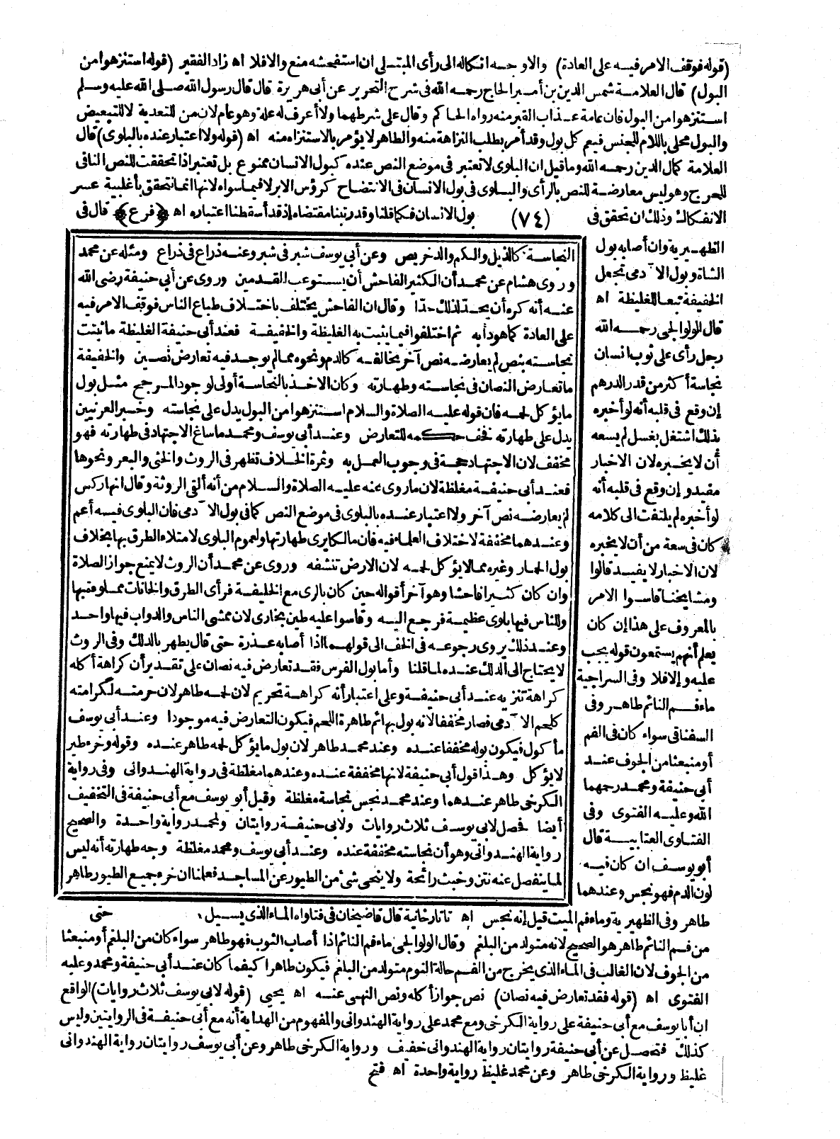 (قَوْلُهُ: وَلَا اعْتِبَارَ عِنْدَهُ بِالْبَلْوَى) قَالَ الْعَلَّامَةُ كَمَالُ الدِّينِ - رَحِمَهُ اللَّهُ - وَمَا قِيلَ أَنَّ الْبَلْوَى لَا تُعْتَبَرُ فِي مَوْضِعِ النَّصِّ عِنْدَهُ كَبَوْلِ الْإِنْسَانِ مَمْنُوعٌ بَلْ تُعْتَبَرُ إذَا تَحَقَّقَتْ لِلنَّصِّ النَّافِي لِلْحَرَجِ وَهُوَ لَيْسَ مُعَارَضَةً لِلنَّصِّ بِالرَّأْيِ وَالْبَلْوَى فِي بَوْلِ الْإِنْسَانِ فِي الِانْتِضَاحِ كَرُءُوسِ الْإِبَرِ لَا فِيمَا سِوَاهُ؛ لِأَنَّهَا إنَّمَا تَتَحَقَّقُ بِأَغْلَبِيَّةِ عُسْرِ الِانْفِكَاكِ وَذَلِكَ إنْ تَحَقَّقَ فِي بَوْلِ الْإِنْسَانِ فَكَمَا قُلْنَا وَقَدْ رَتَّبْنَا مُقْتَضَاهُ إذْ قَدْ أَسْقَطْنَا اعْتِبَارَهُ اهـ.