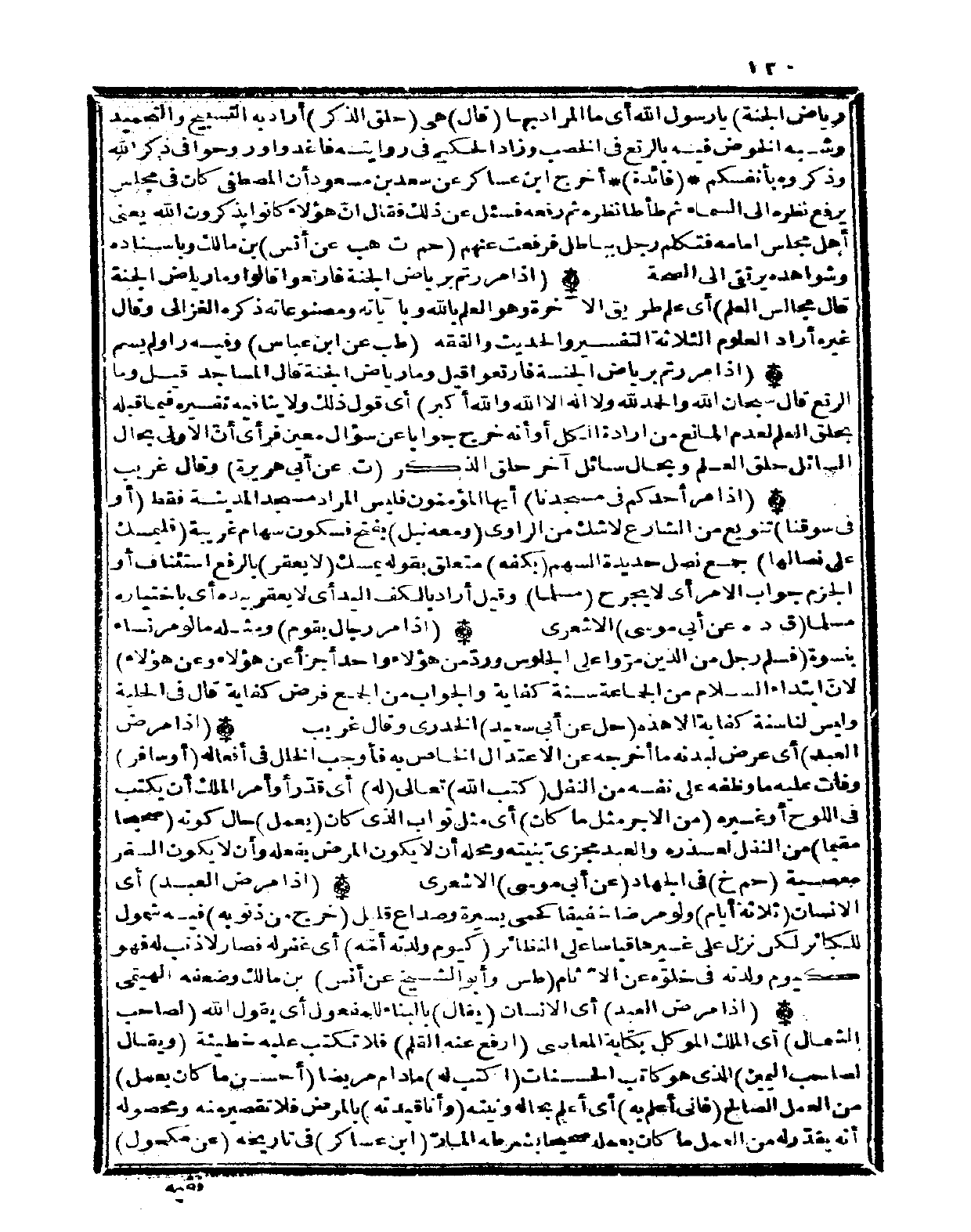 (إِذا مررتم برياض الْجنَّة فارتعوا قيل وَمَا رياض الْجنَّة قَالَ الْمَسَاجِد قيل وَمَا الرتع قَالَ سُبْحَانَ الله وَالْحَمْد لله وَلَا إِلَه إِلَّا الله وَالله أكبر) أَي قَول ذَلِك وَلَا يُنَافِيهِ تَفْسِيره فِيمَا قبله بحلق الْعلم لعدم الْمَانِع من إِرَادَة الْكل أَو أَنه خرج جَوَابا عَن سُؤال معِين فَرَأى أنّ الأولى بِحَال السَّائِل حلق الْعلم وبحال سَائل آخر حلق الذّكر (ت عَن أبي هُرَيْرَة) وَقَالَ غَرِيب