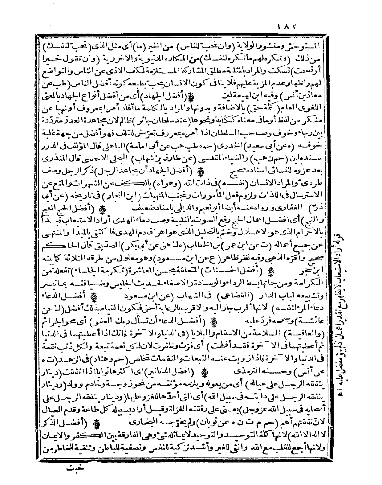 (أفضل الْجِهَاد) أَي من أفضل أَنْوَاع الْجِهَاد بِالْمَعْنَى اللّغَوِيّ الْعَام (كلمة حق) بِالْإِضَافَة وبدونها وَالْمرَاد بِالْكَلِمَةِ مَا أَفَادَ أمرا بِمَعْرُوف أَو نهيا عَن مُنكر من لفظ أَو مَا فِي مَعْنَاهُ ككتابة وَنَحْوهَا (عِنْد سُلْطَان جَائِر) ظَالِم لِأَن مجاهدة العدوّ متردّدة بَين رَجَاء وَخَوف وَصَاحب السُّلْطَان إِذا أمره بِمَعْرُوف تعرّض للتلف فَهُوَ أفضل من جِهَة غَلَبَة خَوفه (هـ عَن أبي سعيد) الْخُدْرِيّ (حم هـ طب هَب عَن أبي أُمَامَة) الْبَاهِلِيّ قَالَ الْمُؤلف فِي الدُّرَر سَنَده لين (حم ن هَب) والضياء الْمَقْدِسِي (عَن طَارق بن شهَاب) البَجلِيّ الأحمسي قَالَ الْمُنْذِرِيّ بعد عزوه للنسائي إِسْنَاده صَحِيح