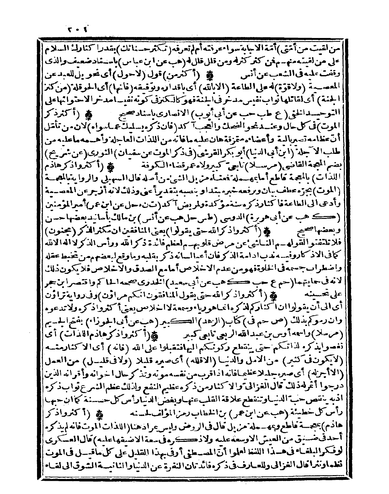 (أَكْثرُوا ذكر هاذم) بِمُعْجَمَة قَاطع وبمهملة مزيل قَالَ فِي الرَّوْض وَلَيْسَ بِمُرَاد هُنَا (اللَّذَّات الْمَوْت فَإِنَّهُ لم يذكرهُ أحد فِي ضيق من الْعَيْش إِلَّا وَسعه عَلَيْهِ وَلَا ذكره فِي سَعَة إِلَّا ضيقها عَلَيْهِ) قَالَ العسكري لَو فكر البلغاء فِي هَذَا اللَّفْظ لعملوا أنّ الْمُصْطَفى أوفى بِهَذَا الْقَلِيل على كل مَا قيل فِي الْمَوْت نظما ونثرا قَالَ الْغَزالِيّ وللعارف فِي ذكره فَائِدَتَانِ النفرة عَن الدُّنْيَا وَالثَّانيَِة الشوق إِلَى لِقَاء