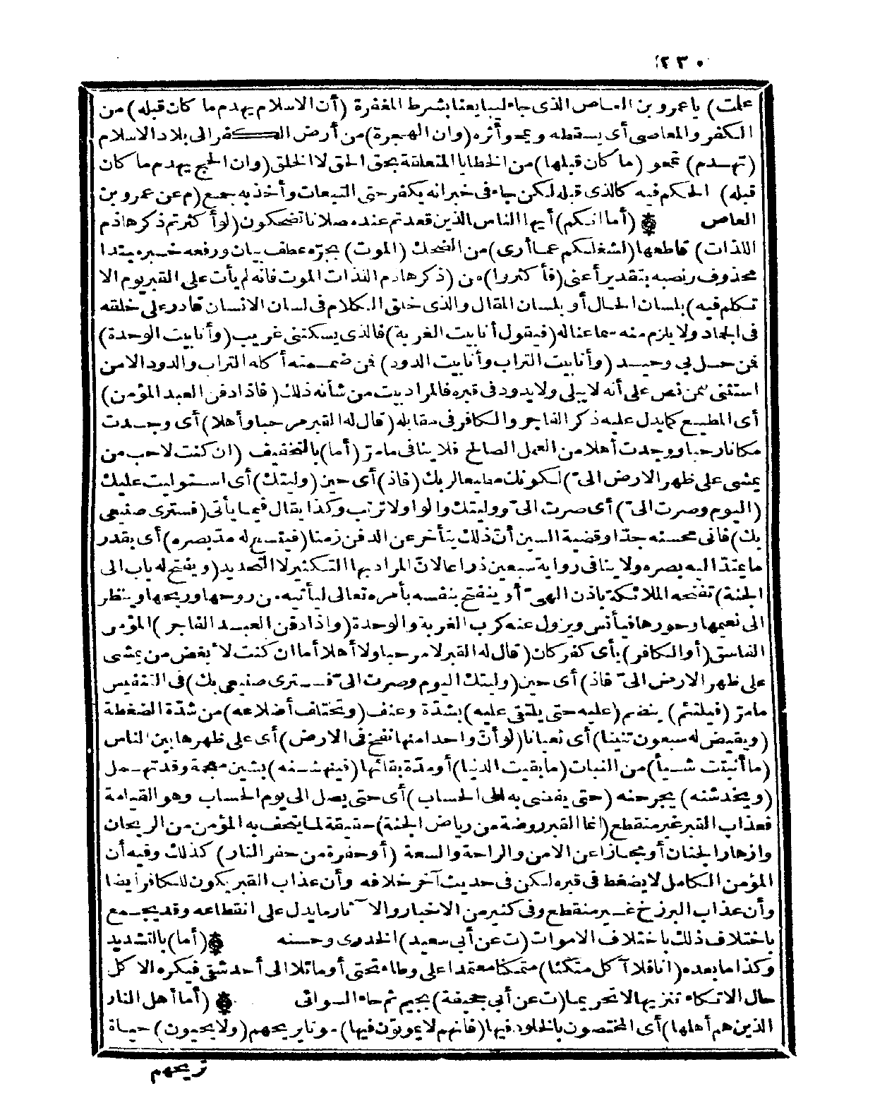 (أما أَنكُمْ) أَيهَا النَّاس الَّذين قعدتم عِنْد مصلانا تضحكون (لَو أَكثرْتُم ذكرهَا ذمّ اللَّذَّات) قاطعها (لَشَغَلَكُمْ عَمَّا أرى) من الضحك (الْمَوْت) بجرّه عطف بَيَان وَرَفعه خبر مُبْتَدأ مَحْذُوف ونصبه بِتَقْدِير أَعنِي (فَأَكْثرُوا) من (ذكرهَا ذمّ اللَّذَّات الْمَوْت فَإِنَّهُ لم يَأْتِي على الْقَبْر يَوْم إِلَّا تكلم فِيهِ) بِلِسَان الْحَال أَو بِلِسَان الْمقَال وَالَّذِي خلق الْكَلَام فِي لِسَان الْإِنْسَان قَادر عل خلقه فِي الجماد وَلَا يلْزم مِنْهُ سَمَاعنَا لَهُ (فَيَقُول أَنا بَيت الغربة) فَالَّذِي يسكنني غَرِيب (وَأَنا بَيت الْوحدَة) فَمن حل بِي وحيد (وَأَنا بَيت التُّرَاب وَأَنا بَيت الدُّود) فَمن ضمنه أكله التُّرَاب والدود إِلَّا من اسْتثْنى مِمَّن نَص على أَنه لَا يبْلى وَلَا يدود فِي قَبره فَالْمُرَاد بَيت من شَأْنه ذَلِك (فَإِذا دفن العَبْد الْمُؤمن) أَي الْمُطِيع كَمَا يدل عَلَيْهِ ذكر الْفَاجِر وَالْكَافِر فِي مُقَابِله (قَالَ لَهُ الْقَبْر مرْحَبًا وَأهلا) أَي وجدت مَكَانا رحبا وَوجدت أَهلا من الْعَمَل الصَّالح فَلَا يُنَافِي مَا مرّ (أما) بِالتَّخْفِيفِ (إِن كنت لأحب من يمشي على ظهر الأَرْض إليّ) لكونك مُطيعًا لِرَبِّك (فَإذْ) أَي حِين (وليتك) أَي استوليت عَلَيْك (الْيَوْم وصرت إليّ) أَي صرت إليّ واليتك والوا وَلَا ترَتّب وَكَذَا يُقَال فِيمَا يَأْتِي (فسترى صنيعي بك) فَإِنِّي محسنة جدّا وَقَضِيَّة السِّين أنّ ذَلِك يتَأَخَّر عَن الدّفن زَمنا (فيتسع لَهُ مدّ بَصَره) أَي بِقدر مَا يمتدّ إِلَيْهِ بَصَره وَلَا يُنَافِي رِوَايَة سبعين ذِرَاعا لأنّ المُرَاد بهَا التكثير لَا التَّحْدِيد (وَيفتح لَهُ بَاب إِلَى الْجنَّة) تفتحه الْمَلَائِكَة بِإِذن إلهيّ أَو ينفتح بِنَفسِهِ بأَمْره تَعَالَى ليَأْتِيه من روحها وريحها وَينظر إِلَى نعيمها وحورها فيأنس وَيَزُول عَنهُ كرب الغربة والوحدة (وَإِذا دفن العَبْد الْفَاجِر) الْمُؤمن الْفَاسِق (أَو الْكَافِر) بِأَيّ كفر كَانَ (قَالَ لَهُ الْقَبْر لَا مرْحَبًا وَلَا أَهلا أما أَن كنت لأبغض من يمشي على ظهر الأَرْض إليّ فَإذْ) أَي حِين (وليتك الْيَوْم وصرت إليّ فسترى صنيعي بك) فِي التَّنْفِيس مَا مرّ (فيلتئم) يَنْضَم (عَلَيْهِ حَتَّى يلتقي عَلَيْهِ) بشدّة وعنف (وتختلف أضلاعه) من شدّة الضغطة (ويقيض لَهُ سَبْعُونَ تنينا) أَي ثعبانا (لَو أنّ وَاحِدًا مِنْهَا نفخ فِي الأَرْض) أَي على ظهرهَا بَين النَّاس (مَا أنبتت شيأ) من النَّبَات (مَا بقيت الدُّنْيَا) أَو مدّة بَقَائِهَا (فينهشنه) بشين مُعْجمَة وَقد تهمل (ويخدشنه) يجرحنه (حَتَّى يُفْضِي بِهِ إِلَى الْحساب) أَي حَتَّى يصل إِلَى يَوْم الْحساب وَهُوَ الْقِيَامَة فعذاب الْقَبْر غير مُنْقَطع (إِنَّمَا الْقَبْر رَوْضَة من رياض الْجنَّة) حَقِيقَة لما يتحف بِهِ الْمُؤمن من الريحان وأزهار الْجنان أَو مجَازًا عَن الْأَمْن والراحة وَالسعَة (أَو حُفْرَة من حفر النَّار) كَذَلِك وَفِيه أَن الْمُؤمن الْكَامِل لَا يضغط فِي قَبره لَكِن فِي حَدِيث آخر خِلَافه وَأَن عَذَاب الْقَبْر يكون للْكَافِرِ أَيْضا وَأَن عَذَاب البرزخ غير مُنْقَطع وَفِي كثير من الْأَخْبَار والْآثَار مَا يدل على انْقِطَاعه وَقد يجمع باخْتلَاف ذَلِك باخْتلَاف الْأَمْوَات (ت عَن أبي سعيد) الْخُدْرِيّ وَحسنه