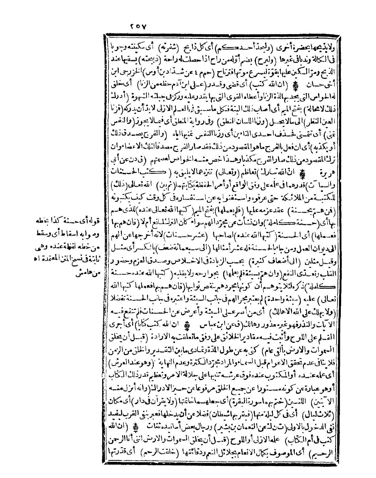 أنّ الله تبَارك) تعاظم (وَتَعَالَى) تنزه عَمَّا لَا يَلِيق بِهِ (كتب الْحَسَنَات والسيآت) قدرهما فِي علمه على وفْق الْوَاقِع أَو أَمر الْحفظَة بكتابتهما (ثمَّ بَين) الله تَعَالَى (ذَلِك) للكتبة من الْمَلَائِكَة حَتَّى عرفوه واستغنوا بِهِ عَن استفساره فِي كل وَقت كَيفَ يكتبونه (فَمن همّ بحسنة) عقد عزمه عَلَيْهَا (فَلم يعملها) بِفَتْح الْمِيم (كتبهَا الله تَعَالَى عِنْده) للَّذي هم بهَا أَي (حسنه كَامِلَة) وَإِن نشأت عَن مجرّد الْهم سَوَاء كَانَ التّرْك لمَانع أم لَا (فَإِن هم بهَا فعملها) أَي الْحَسَنَة (كتبهَا الله عِنْده) لصَاحِبهَا (عشر حَسَنَات) لِأَنَّهُ أخرجهَا عَن الْهم إِلَى ديوَان الْعَمَل وَمن جَاءَ بِالْحَسَنَة فَلهُ عشر أَمْثَالهَا (إِلَى سَبْعمِائة ضعف) بِالْكَسْرِ أَي مثل وَقيل مثلين (إِلَى أَضْعَاف كَثِيرَة) بِحَسب الزِّيَادَة فِي الْإِخْلَاص وَصدق الْعَزْم وَحُضُور الْقلب وتعدّي النَّفْع (وَإِن همّ بسيئة فَلم يعملها) بجوارحه وَلَا بِقَلْبِه (كتبهَا الله عِنْده حَسَنَة كَامِلَة) ذكره لِئَلَّا يتَوَهَّم أَن كَونهَا مجردهم ينقص ثَوَابهَا (فَإِن هم بهَا فعملها كتبهَا الله تَعَالَى) عَلَيْهِ (سَيِّئَة وَاحِدَة) لم يعْتَبر مجرا لَهُم فِي جَانب السَّيئَة واعتبره فِي جَانب الْحَسَنَة تفضلا (وَلَا يهْلك على الله إِلَّا هَالك) أَي من أصر على السَّيئَة وَأعْرض عَن الْحَسَنَات فَلم تَنْفَع فِيهِ الْآيَات والنذز فَهُوَ غير مَعْذُور وهالك (ق عَن ابْن عَبَّاس