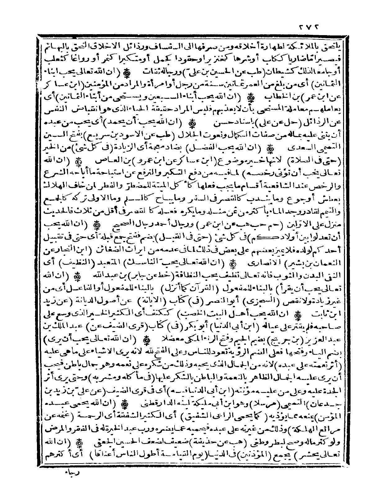 (أَن الله تَعَالَى يحب أَن يرى) بِضَم الْيَاء وَفتحهَا فعلى الضَّم الرُّؤْيَة تعود للنَّاس وعَلى الْفَتْح لله لِأَنَّهُ يرى الْأَشْيَاء على مَا هِيَ عَلَيْهِ (أثر نعْمَته على عَبده) لِأَنَّهُ من الْجمال الَّذِي يُحِبهُ وَذَلِكَ من شكره على نعمه وَهُوَ جمال بَاطِن فيحب أَن يرى عَلَيْهِ الْجمال الظَّاهِر بِالنعْمَةِ وَالْبَاطِن بالشكر عَلَيْهَا (فِي مأكله ومشربه) وَحَتَّى يرى أثر الْجدّة عَلَيْهِ وعَلى من عَلَيْهِ مُؤْنَته (ابْن أبي الدُّنْيَا فِيهِ) أَي فِي قرى الضَّيْف (عَن عليّ بن زيد بن جدعَان) التَّمِيمِي (مُرْسلا) وَهُوَ ابْن أبي مليكَة لينه الدَّارَقُطْنِيّ