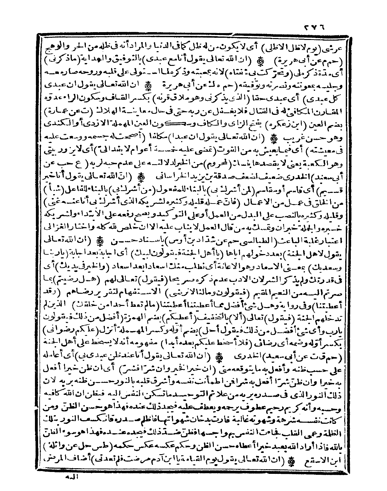 (أَن الله تَعَالَى يَقُول لأهل الْجنَّة) بعد دُخُولهمْ إِيَّاهَا (يَا أهل الْجنَّة فَيَقُولُونَ لبيْك) أَي إِجَابَة بعد إِجَابَة (يَا رَبنَا وَسَعْديك) بِمَعْنى الإسعاد وَهُوَ الْإِعَانَة أَي نطلب مِنْك إسعادا بعد إسعاد (وَالْخَيْر فِي يَديك) أَي فِي قدرتك وَلم يذكر الشَّرّ لِأَن الْأَدَب عدم ذكره صَرِيحًا (فَيَقُول) تَعَالَى لَهُم (هَل رَضِيتُمْ) بِمَا صرتم إِلَيْهِ من النَّعيم الْمُقِيم (فَيَقُولُونَ وَمَا لنا لَا نرضى) الِاسْتِفْهَام لتقرير رضاهم (وَقد أَعطيتنَا) وَفِي رِوَايَة وَهل شَيْء أفضل مِمَّا أَعطيتنَا أَعطيتنَا (مَا لم تعط أحدا من خلقك) الَّذين لم تدخلهم الْجنَّة (فَيَقُول) تَعَالَى (أَلا) بِالتَّخْفِيفِ (أُعْطِيكُم) بِضَم الْهمزَة (أفضل من ذَلِك فَيَقُولُونَ يَا رب وَأي شَيْء أفضل من ذَلِك فَيَقُول أحل) بِضَم أوّله وَكسر الْمُهْملَة أنزل (عَلَيْكُم رِضْوَانِي) بِكَسْر أوّله وضمه أَي رضائي (فَلَا أَسخط عَلَيْكُم بعده أبدا) مَفْهُومه أَنه لَا يسْخط على أهل الْجنَّة (حم ق ت عَن أبي سعيد) الْخُدْرِيّ