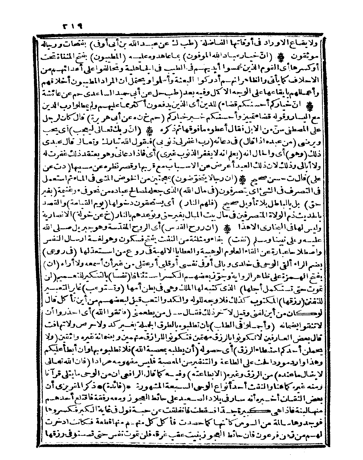 (ان روح الْقُدس) أَي الرّوح المقدسة وَهُوَ جِبْرِيل صلى الله عَلَيْهِ وعَلى نَبينَا وَسلم (نفت) بفاء ومثلثة من النفث بِفَتْح فَسُكُون وَهُوَ لُغَة إرْسَال النَّفس وَاصْطِلَاحا عبارَة عَن إِلْقَاء الْعُلُوم الوهبية والعطايا الإلهية فِي روع من استعدّ لَهَا (فِي روعي) بِضَم الرَّاء ألْقى الْوَحْي فِي خلدي وبالى أَو فِي نَفسِي أَو قلبِي أَو عَقْلِي من غير أَن أسمعهُ وَلَا أرَاهُ (ان) بِفَتْح الْهمزَة على ظَاهر الرِّوَايَة وجوّز بَعضهم الْكسر استئنافاً (نفسا) بالتنكير للتعميم (لن تَمُوت حَتَّى تستكمل أجلهَا) الَّذِي كتبه لَهَا الْملك وَهِي فِي بطن أمهَا (وتستوعب) غاير التَّعْبِير للتفنن (رزقها) الْمَكْتُوب كَذَلِك فَلَا وَجه للوله والكدر والتعب قيل لبَعْضهِم من أَيْن تَأْكُل قَالَ لَو كَانَ من أَيْن لفني وَقيل لآخر ذَلِك فَقَالَ سل من يطعمني (فَاتَّقُوا الله) أَي احْذَرُوا أَن لَا تثقوا بضمانه (وأجملوا فِي الطّلب) بِأَن تطلبوه بالطرق الجميلة بِغَيْر كد وَلَا حرص وَلَا تهافت قَالَ بعض العارفين لَا تَكُونُوا بالرزق مهتمين فتكونوا للرازق متهمين وبضمانه غير واثقين (وَلَا يحملن أحدكُم استبطاء الرزق) أَي حُصُوله (أَن يَطْلُبهُ بِمَعْصِيَة الله) فَلَا تطلبوه بهَا وَإِن أَبْطَأَ عَلَيْكُم وَهَذَا وَارِد مورد الْحَث على الطَّاعَة والتنفير من الْمعْصِيَة فَلَيْسَ مَفْهُومه مرَادا (فَإِن الله تَعَالَى لَا ينَال مَا عِنْده) من الرزق وَغَيره (إِلَّا بِطَاعَتِهِ) وَفِيه كَمَا قَالَ الرَّافِعِيّ أَن من الْوَحْي مَا يُتْلَى قُرْآنًا وَمِنْه غَيره كَمَا هُنَا والنفث أحد أَنْوَاع الْوَحْي السَّبْعَة الْمَشْهُورَة (فَائِدَة) ذكر المقريزي أَن بعض الثِّقَات أخبرهُ أَنه سَار فِي بِلَاد الصَّعِيد على حَائِط الْعَجُوز وَمَعَهُ رفْقَة فاقتلع أحدهم مِنْهَا لبنة فَإِذا هِيَ كَبِيرَة جدّاً فَسَقَطت فانفلقت عَن حَبَّة فول فِي غَايَة الْكبر فكسروها فوجدوها سَالِمَة من السوس كَأَنَّهَا كَمَا حصدت فَأكل كل مِنْهُم مِنْهَا قِطْعَة فَكَانَت ادخرت لَهُم من زمن فِرْعَوْن فان حَائِط الْعَجُوز بنيت عقب غرقه فَلَنْ تَمُوت نفس حَتَّى تستوفي رزقها
