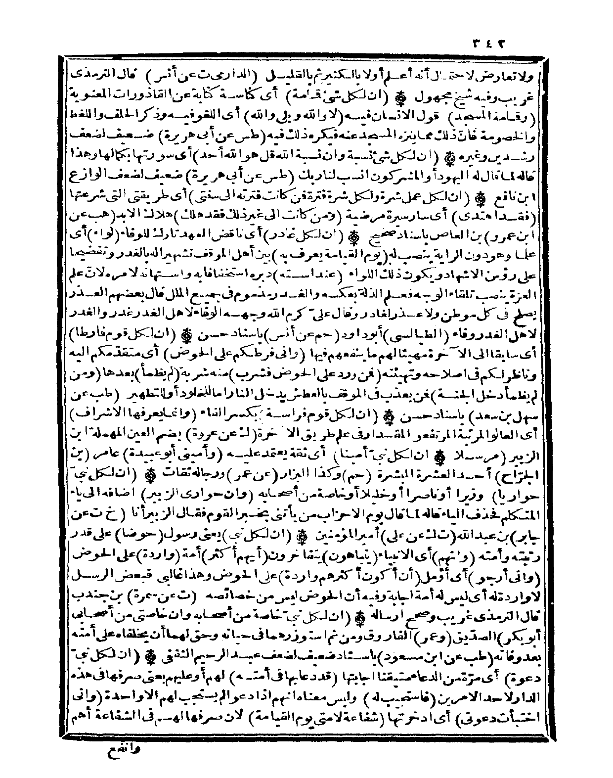 (أَن لكل نَبِي) يَعْنِي رَسُول (حوضا) على قدر رتبته وَأمته (وَأَنَّهُمْ) أَي الْأَنْبِيَاء (يتباهون) يتفاخرون (أَيهمْ أَكثر) أمة (وَارِدَة) على الْحَوْض (وَإِنِّي أَرْجُو) أَي أُؤَمِّل (أَن أكون أَكْثَرهم وَارِدَة) على الْحَوْض وَهَذَا غالبي فبعض الرُّسُل لَا وَارِدَة لَهُ أى لَيْسَ لَهُ أمة إِجَابَة وَفِيه أَن الْحَوْض لَيْسَ من خَصَائِصه (ت عَن سَمُرَة) بن جُنْدُب قَالَ التِّرْمِذِيّ // (غَرِيب وَصحح إرْسَاله) //
