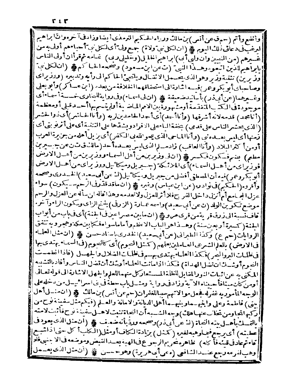 (أَن مثل الْعلمَاء فِي الأَرْض) بِالْعلمِ الشَّرْعِيّ العاملين بعلمهم (كَمثل النُّجُوم) أَي كَالنُّجُومِ (فِي السَّمَاء يهتدى بهَا فِي ظلمات الْبر وَالْبَحْر) فَكَذَا الْعلمَاء يهتدى بهم فِي ظلمات الضلال وَالْجهل (فَإِذا انطمست النُّجُوم أوشك أَن نضل الهداة) فَكَذَا إِذا مَاتَت الْعلمَاء أوشك أَن تضل النَّاس وَأفَاد بالتشبيه المكني بِهِ عَن إِثْبَات النُّور الْمُقَابل للظلمة الْمُسْتَعَار كل مِنْهُمَا للْعلم وَالْجهل الْإِشَارَة إِلَى قَوْله تَعَالَى {أَو من كَانَ مَيتا فأحييناه} الْآيَة وَزَاد فِي رِوَايَة وَمثل بَاب حطة فِي بني اسرائيل من دخله على الْوَجْه الْمَأْمُور بِهِ غفر لَهُ فَجعل مُوَالَاتهمْ سَببا للغفران (حم عَن أنس) بن مَالك