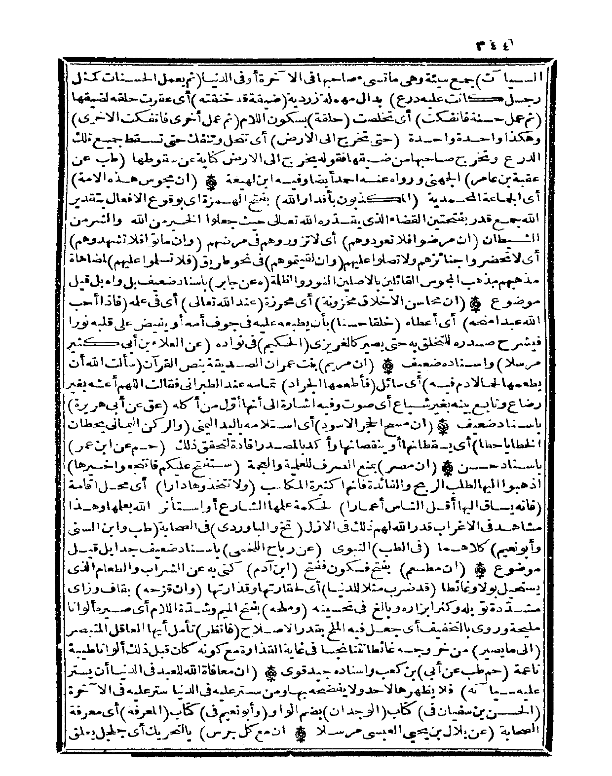(أَن مجوس هَذِه الْأمة) أَي الْجَمَاعَة المحمدية (المكذبون بأقدار الله) بِفَتْح الْهمزَة أَي بِوُقُوع الْأَفْعَال بِتَقْدِير الله جمع قدر بِفتْحَتَيْنِ الْقَضَاء الَّذِي يقدره الله تَعَالَى حَيْثُ جعلُوا الْخَيْر من الله وَالشَّر من الشَّيْطَان (أَن مرضوا فَلَا تعودوهم) أَي لَا تزوروهم فِي مرضهم (وَإِن مَاتُوا فَلَا تشهدوهم) أَي لَا تحضروا جنائزهم وَلَا تصلوا عَلَيْهِم (وَإِن لقيتموهم) فِي نَحْو طَرِيق (فَلَا تسلموا عَلَيْهِم) لمضاهاة مَذْهَبهم مَذْهَب الْمَجُوس الْقَائِلين بالأصلين النُّور والظلمة (هـ عَن جَابر) // (بِإِسْنَاد ضَعِيف بل واه بل قيل مَوْضُوع) //