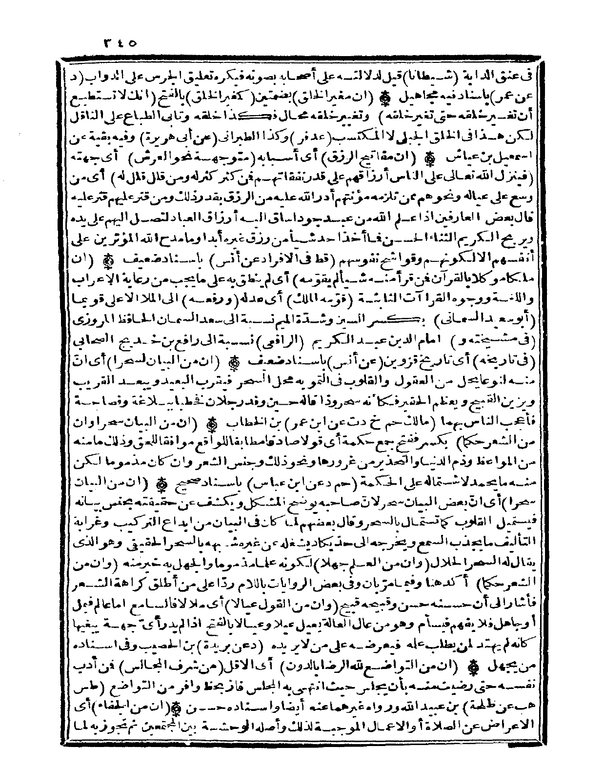 (أَن من الْبَيَان سحرًا) أَي أَن بعض الْبَيَان سحر لِأَن صَاحبه يُوضح الْمُشكل ويكشف عَن حَقِيقَته بحنس بَيَانه فيستميل الْقُلُوب كَمَا تستمال بِالسحرِ وَقَالَ بَعضهم لما كَانَ فِي الْبَيَان من إبداع التَّرْكِيب وغرابة التَّأْلِيف مَا يجذب السّمع ويخرجه إِلَى حد يكَاد يشْغلهُ عَن غَيره شبهه بِالسحرِ الحقيقى وَهُوَ الَّذِي يُقَال لَهُ السحر الْحَلَال (وَأَن من الْعلم جهلا) لكَونه علما مذموما وَالْجهل بِهِ خير مِنْهُ (وَأَن من الشّعْر حكما) أكدها وَفِيمَا مربان وَفِي بعض الرِّوَايَات بِاللَّامِ ردا على من أطلق كَرَاهَة الشّعْر فَأَشَارَ إِلَى أَن حسنه حسن وقبيحه قَبِيح (وَأَن من القَوْل عيالا) أَي ملالا فالسا مَعَ أما عَالم فيمل أَو جَاهِل فَلَا يفهم فيسأم وَهُوَ من عَال العالة يعيل عيلا وعيالا بالتفح إِذا لم يدر أَي جِهَة يبغيها كَأَنَّهُ لم يهتد لمن يطْلب عمله فيعرضه على من لَا يُريدهُ (دعن بُرَيْدَة) بن الْحصيب وَفِي إِسْنَاده من يجهل