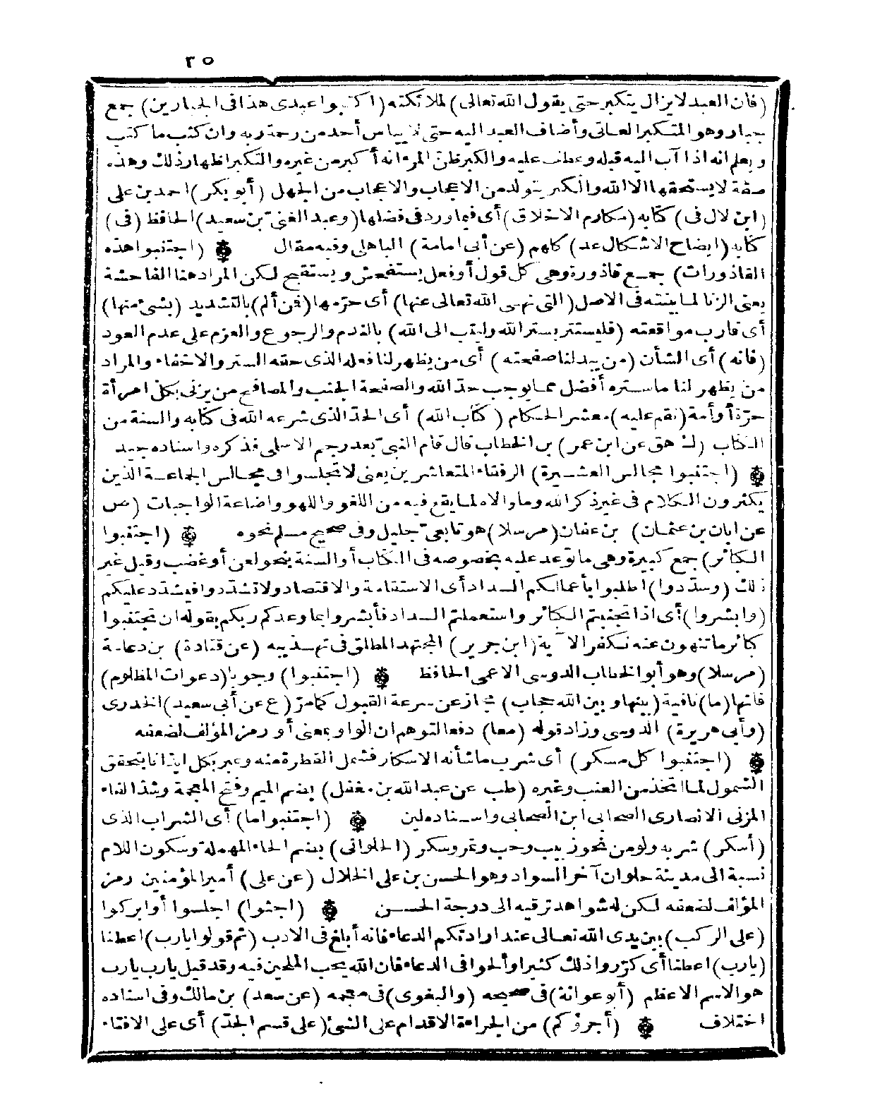 (اجتنبوا الْكَبَائِر) جمع كَبِيرَة وَهِي مَا توعد عَلَيْهِ بِخُصُوصِهِ فِي الْكتاب أَو السّنة بِنَحْوِ لعن أَو غضب وَقيل غير ذَلِك (وسدّدوا) اطْلُبُوا بأعمالكم السداد أَي الاسْتقَامَة والاقتصاد وَلَا تشدّدوا فيشدّد عَلَيْكُم (وَأَبْشِرُوا) أَي إِذا تجنبتم الْكَبَائِر واستعملتم السداد فأبشروا بِمَا وَعدكُم ربكُم بقوله أَن تجتنبوا كَبَائِر مَا تنهون عَنهُ نكفر الْآيَة (ابْن جرير) الْمُجْتَهد الْمُطلق فِي تهذيبه (عَن قَتَادَة) بن دعامة (مُرْسلا) وَهُوَ أَبُو الْخطاب الدوسي الْأَعْمَى الْحَافِظ