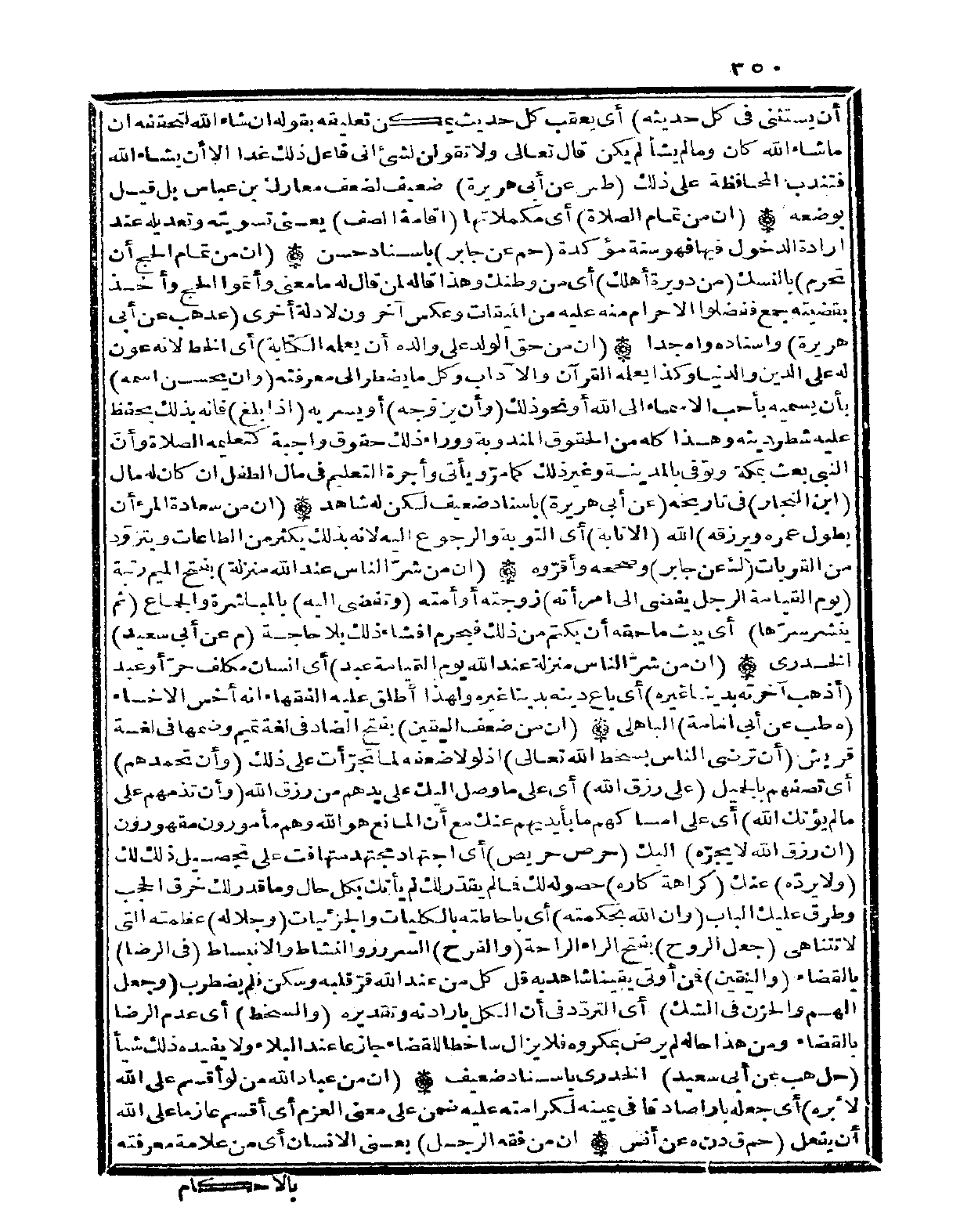 أَن يَسْتَثْنِي فِي كل حَدِيثه) أَي يعقب كل حَدِيث يُمكن تَعْلِيقه بقوله إِن شَاءَ الله لتحققه أَن مَا شَاءَ الله كَانَ وَمَا لم يَشَأْ لم يكن قَالَ تَعَالَى وَلَا تقولن لشَيْء إِنِّي فَاعل ذَلِك غَدا إِلَّا أَن يَشَاء الله فتندب الْمُحَافظَة على ذَلِك (طبر عَن أبي هُرَيْرَة) // (ضَعِيف لضعف معارك بن عَبَّاس بل قيل بِوَضْعِهِ) //