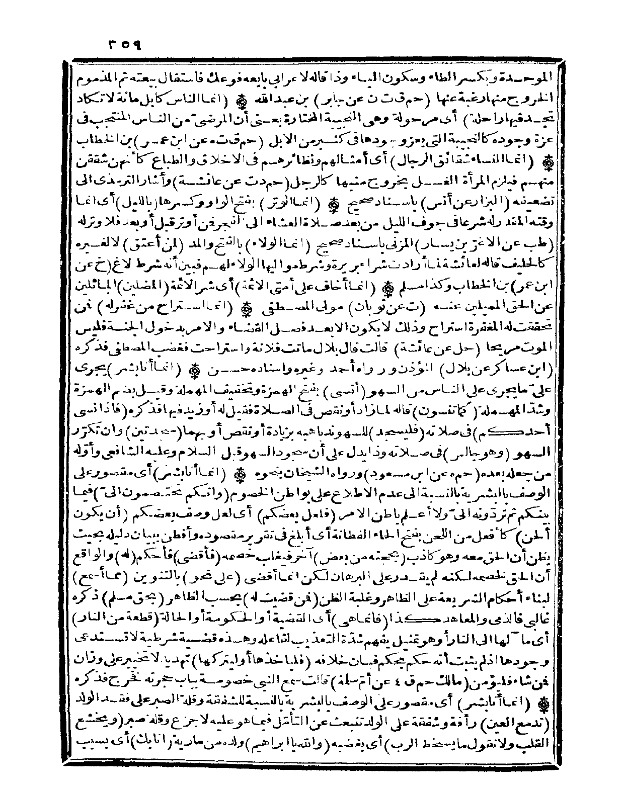 (إِنَّمَا أَنا بشر) أَي مَقْصُور على الْوَصْف بالبشرية بِالنِّسْبَةِ إِلَى عدم الِاطِّلَاع على بواطن الْخُصُوم (وَإِنَّكُمْ تختصمون إِلَيّ) فِيمَا بَيْنكُم ثمَّ تردونه إِلَيّ وَلَا أعلم بَاطِن الْأَمر (فَلَعَلَّ بَعْضكُم) أَي لَعَلَّ وصف بَعْضكُم (أَن يكون أَلحن) كأفعل من اللّحن بِفَتْح الْحَاء الفطانة أَي أبلغ فِي تَقْرِير مَقْصُوده وأفطن بِبَيَان دَلِيله بِحَيْثُ يظنّ أَن الْحق مَعَه وَهُوَ كَاذِب (بحجته من بعض) آخر فيغلب خَصمه (فأقضي) فأحكم (لَهُ) وَالْوَاقِع أَن الْحق لخصمه لكنه لم يقدر على الْبُرْهَان لَكِن إِنَّمَا أَقْْضِي (على نَحْو) بِالتَّنْوِينِ (مِمَّا أسمع) لبِنَاء أَحْكَام الشَّرِيعَة على الظَّاهِر وَغَلَبَة الظَّن (فَمن قضيت لَهُ) بِحَسب الظَّاهِر (بِحَق مُسلم) ذكره غالبي فالذمي والمعاهد كَذَا (فَإِنَّمَا هِيَ) أَي الْقَضِيَّة أَو الْحُكُومَة أَو الْحَالة (قِطْعَة من النَّار) أَي مآلها إِلَى النَّار أَو هُوَ تَمْثِيل يفهم شدَّة التعذيب لفَاعِله وَهَذِه قَضِيَّة شَرْطِيَّة لَا تستدعي وجودهَا إِذا لم يثبت أَنه حكم بِحكم فَبَان خِلَافه (فليأخذها أَو ليتركها) تهديد لَا تَخْيِير على وزان فَمن شَاءَ فليؤمن (مَالك حم ق 4 عَن أم سَلمَة) قَالَت سمع النَّبِي خُصُومَة بِبَاب حجرته فَخرج فَذكره