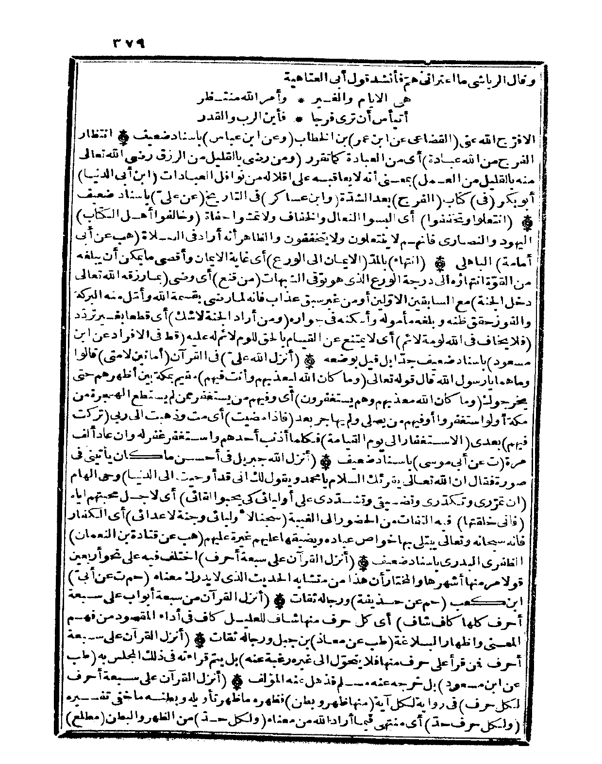 (أنزل الْقُرْآن على سَبْعَة أحرف لكل حرف) فِي رِوَايَة لكل آيَة (مِنْهَا ظهر وبطن) فظهره مَا ظهر تَأْوِيله وبطنه مَا خَفِي تَفْسِيره (وَلكُل حرف حد) أَي مُنْتَهى فِيمَا أَرَادَ الله من مَعْنَاهُ (وَلكُل حد) من الظّهْر والبطن (مطلع)