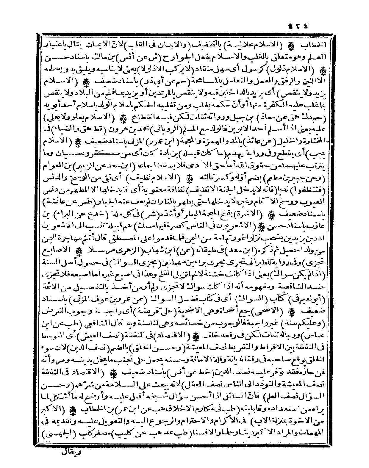 (الاسلام يَعْلُو وَلَا يعلى) عَلَيْهِ يَعْنِي إِذا أسلم أحد الْأَبَوَيْنِ فَالْوَلَد مَعَ الْمُسلم (الرَّوْيَانِيّ) مُحَمَّد بن هرون (قطّ هق والضياء) فِي المختارة والخليل (عَن عَائِذ) بِالْمدِّ والهمزة والمعجمة (ابْن عَمْرو) الْمُزنِيّ // (بِإِسْنَاد ضَعِيف) //