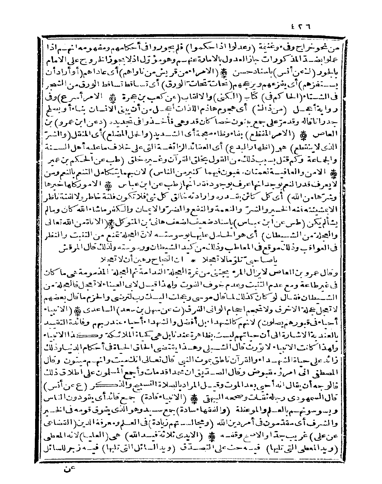 (الْأَنْبِيَاء أَحيَاء فِي قُبُورهم يصلونَ) لأَنهم كالشهداء بل أفضل وَالشُّهَدَاء أَحيَاء عِنْد رَبهم وَفَائِدَة التَّقْيِيد بالعندية الاشارة إِلَى أَن حياتهم لَيست بظاهرة عندنَا بل هِيَ كحياة الْمَلَائِكَة وَكَذَا الْأَنْبِيَاء وَلِهَذَا كَانَت الْأَنْبِيَاء لَا تورث قَالَ الشبلي وَهَذَا يَقْتَضِي الحاق الْحَيَاة فِي أَحْكَام الدُّنْيَا وَذَلِكَ زَائِد على حَيَاة الشُّهَدَاء وَالْقُرْآن نَاطِق بِمَوْت النَّبِي قَالَ تَعَالَى إِنَّك ميت وَإِنَّهُم ميتون وَقَالَ الْمُصْطَفى إِنِّي امْرُؤ مَقْبُوض وَقَالَ الصّديق أَن مُحَمَّدًا قد مَاتَ وَأجْمع الْمُسلمُونَ على اطلاق ذَلِك فَالْوَجْه أَن يُقَال أَنه أحيي بعد الْمَوْت وَقيل المُرَاد بِالصَّلَاةِ التَّسْبِيح وَالذكر (ع عَن أنس) // (قَالَ السمهودي رِجَاله ثِقَات وَصَححهُ الْبَيْهَقِيّ) //