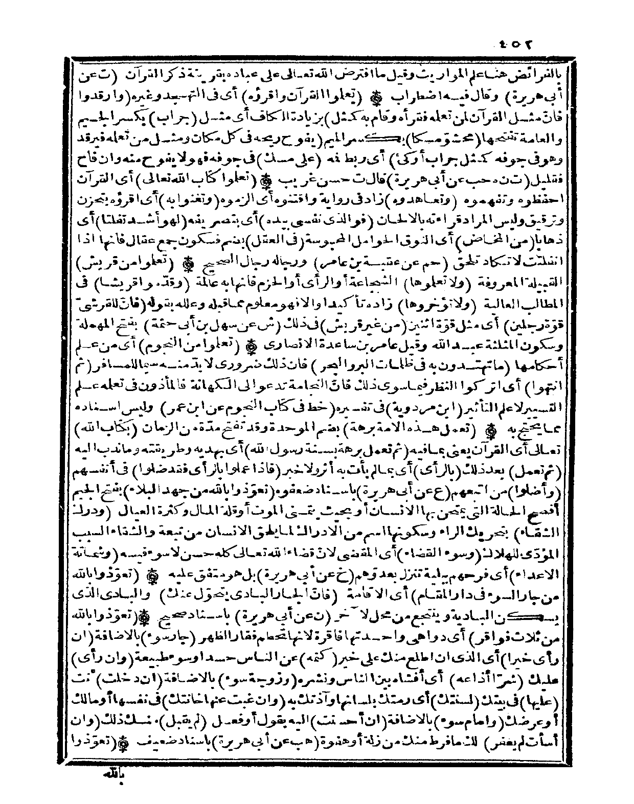 (تعْمل هَذِه الْأمة بُرْهَة) بِضَم الْمُوَحدَة وَقد تفتح مُدَّة من الزَّمَان (بِكِتَاب الله) تَعَالَى أَي الْقُرْآن يَعْنِي بِمَا فِيهِ (ثمَّ تعْمل بُرْهَة بِسنة رَسُول الله) أَي بهديه وطريقته وَمَا ندب إِلَيْهِ (ثمَّ تعْمل) بعد ذَلِك (بِالرَّأْيِ) أَي بِمَا لم يَأْتِ بِهِ أثر وَلَا خبر (فَإِذا عمِلُوا بِالرَّأْيِ فقد ضلوا) فِي أنفسهم (وأضلوا) من اتبعهم (عَن أبي هُرَيْرَة) // (بِإِسْنَاد ضَعَّفُوهُ) // (تعوذوا بِاللَّه من جهد الْبلَاء) بِفَتْح الْجِيم أفْصح الْحَالة الَّتِي يمْتَحن بهَا الانسان أَو بِحَيْثُ يتمني الْمَوْت أَو قلَّة المَال وَكَثْرَة الْعِيَال (ودرك الشَّقَاء) بتحريك الرَّاء وسكونها اسْم من الادراك لما يلْحق الانسان من تبعة والشقاء السَّبَب الْمُؤَدى للهلاك (وَسُوء الْقَضَاء) أَي الْمقْضِي لِأَن قَضَاء الله تَعَالَى كُله حسن لَا سوء فِيهِ (وشماتة الْأَعْدَاء) أَي فَرَحهمْ ببلية تنزل بعد وهم (خَ عَن أبي هُرَيْرَة) بل هُوَ (مُتَّفق عَلَيْهِ)