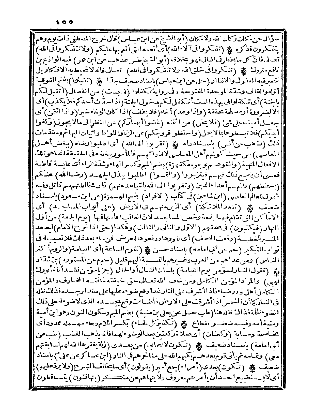 سُؤال عَن مَكَان وَكَانَ الله وَلَا مَكَان (أَبُو الشَّيْخ عَن ابْن عَبَّاس) قَالَ خرج الْمُصْطَفى ذَات يَوْم وهم يتفكرون فَذكره