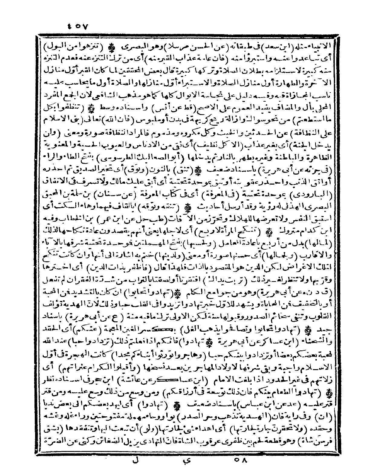 (تنزهوا من الْبَوْل) أَي تباعدوا عَنهُ واستبرؤوا مِنْهُ (فَإِن عَامَّة عَذَاب الْقَبْر مِنْهُ) أَي من ترك التَّنَزُّه عَنهُ فَعدم التَّنَزُّه مِنْهُ كَبِيرَة لاستلزامه بطلَان الصَّلَاة وَتركهَا كَبِيرَة قَالَ بعض الْمُحَقِّقين لما كَانَ الْقَبْر أول منَازِل الْآخِرَة وَالطَّهَارَة أول منَازِل الصَّلَاة والاستبراء أول منازلها وَالصَّلَاة أول مَا يُحَاسب عَلَيْهِ ناسب المجازاة فِيهِ وَفِيه دَلِيل على نَجَاسَة الأبوال كلهَا كَمَا هُوَ مَذْهَب الشَّافِعِي لِأَن الْجمع الْمُفْرد الْمحلى بأل والمضاف يُفِيد الْعُمُوم على الْأَصَح (قطّ عَن أنس) // (وَإِسْنَاده وسط) //