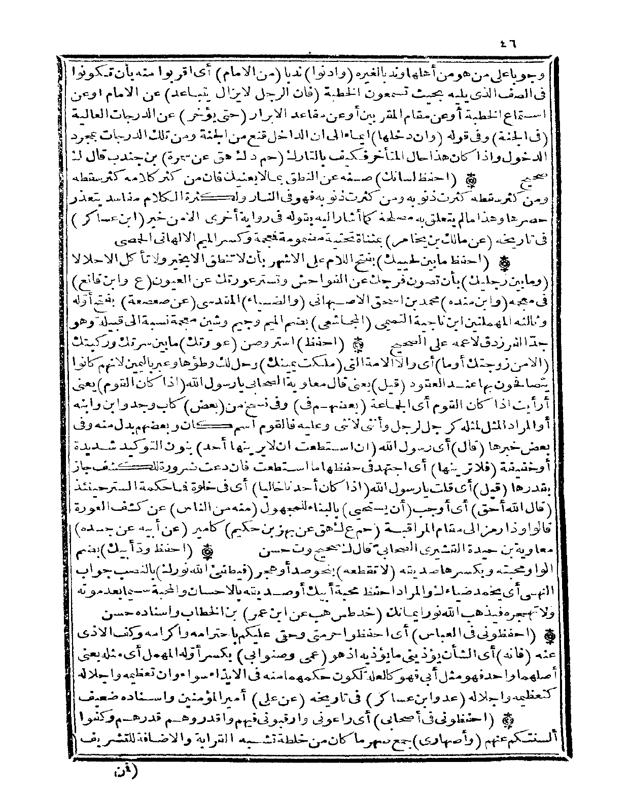 (احفظ مَا بَين لحييك) بِفَتْح اللَّام على الْأَشْهر بِأَن لَا تنطق إِلَّا بِخَير وَلَا تَأْكُل إِلَّا حَلَالا (وَمَا بَين رجليك) بِأَن تصون فرجك عَن الْفَوَاحِش وتستر عورتك عَن الْعُيُون (ع وَابْن قَانِع) فِي مُعْجَمه (وَابْن مَنْدَه) مُحَمَّد بن إِسْحَاق الْأَصْبَهَانِيّ (والضياء) الْمَقْدِسِي (عَن صعصعة) بِفَتْح أوّله وثالثه الْمُهْمَلَتَيْنِ ابْن نَاجِية التَّمِيمِي (الْمُجَاشِعِي) بِضَم الْمِيم وجيم وشين مُعْجمَة نِسْبَة إِلَى قَبيلَة وَهُوَ جدّ الفرزدق لَا عَمه على الصَّحِيح