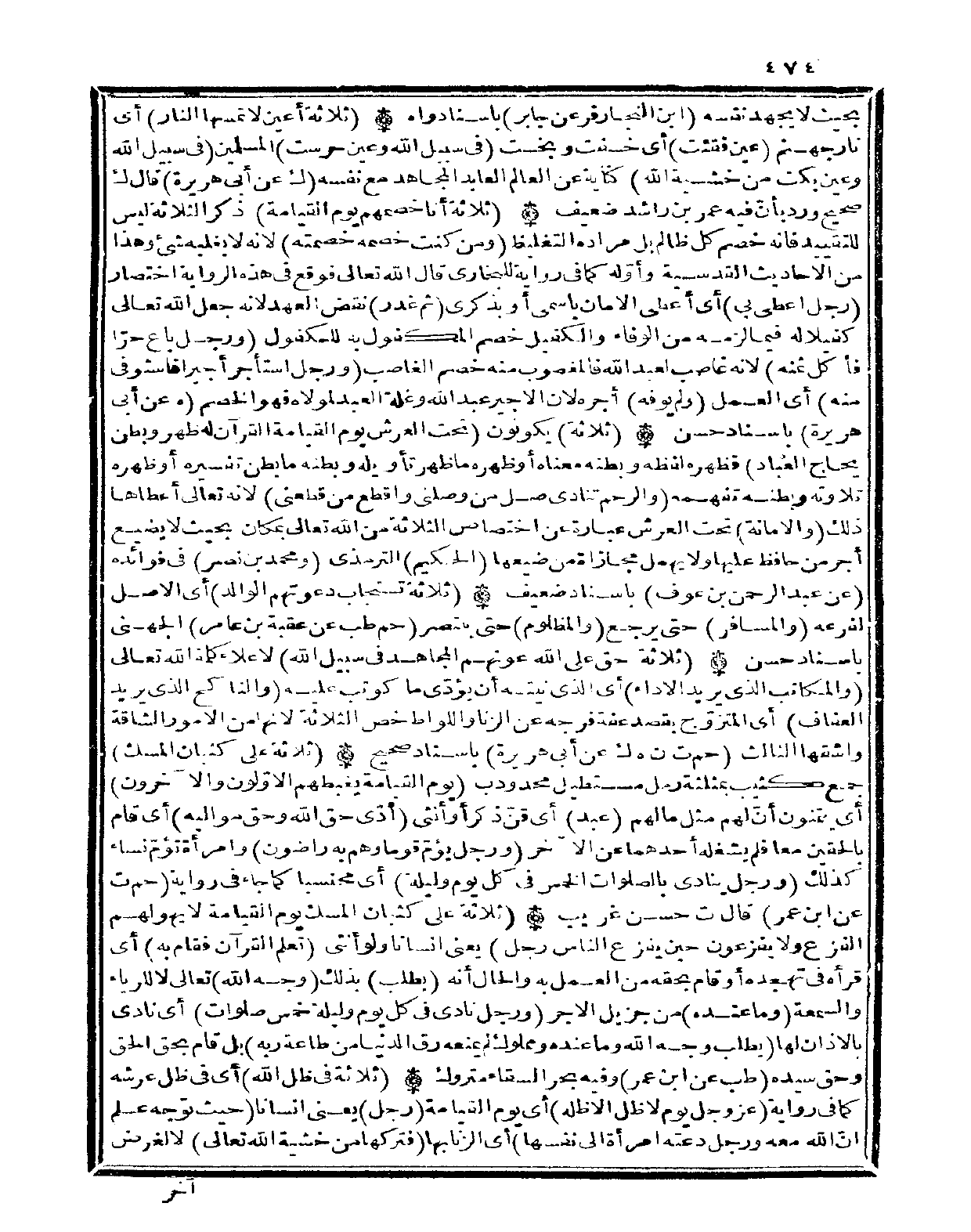 (ثَلَاثَة على كُثْبَان الْمسك جمع كثيب بمثلثة رمل مستطيل محدودب (يَوْم الْقيام يَغْبِطهُمْ الْأَولونَ وَالْآخرُونَ) أَي يتمنون أَن لَهُم مثل مَالهم (عبد) أَي قن ذكر أَو أُنْثَى (أدّى حق الله وَحقّ موَالِيه) أَي قَامَ بالحقين مَعًا فَلم يشْغلهُ أَحدهمَا عَن الآخر (وَرجل يؤم قوما وهم بِهِ راضون) وَامْرَأَة تؤم نسَاء كَذَلِك (وَرجل يُنَادي بالصلوات الْخمس فِي كل يَوْم وَلَيْلَة) أَي محتسبا كَمَا جَاءَ فِي رِوَايَة (حم ت عَن ابْن عمر) قَالَ ت // (حسن غَرِيب) //