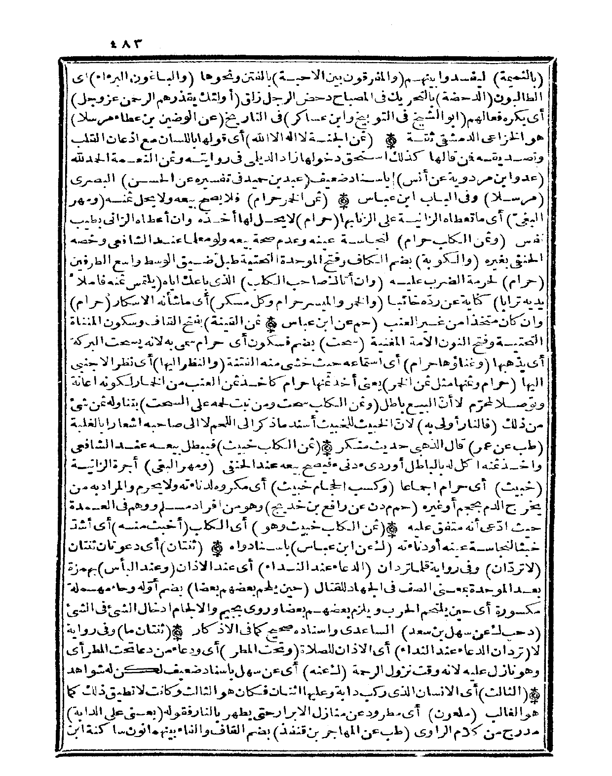 (ثمن الْخمر حرَام) فَلَا يَصح بَيْعه وَلَا يحل ثمنه (وَمهر الْبَغي) أَي مَا تعطاه الزَّانِيَة على الزِّنَا بهَا (حرَام) لَا يحل لَهَا أَخذه وَإِن أعطَاهُ الزَّانِي بِطيب نفس (وَثمن الْكَلْب حرَام) لنجاسة عينه وَعدم صِحَة بَيْعه وَلَو معلما عِنْد الشَّافِعِي وَخَصه الْحَنَفِيّ بِغَيْرِهِ (والكوبة) بِضَم الْكَاف وَفتح الْمُوَحدَة التَّحْتِيَّة طبل ضيق الْوسط وَاسع الطَّرفَيْنِ (حرَام) لحُرْمَة الضَّرْب عَلَيْهِ (وَإِن أَتَاك صَاحب الْكَلْب) الَّذِي باعك إِيَّاه (يلْتَمس ثمنه فاملأ يَدَيْهِ تُرَابا) كِنَايَة عَن رده خائبا (وَالْخمر وَالْميسر حرَام وكل مُسكر) أَي مَا شَأْنه الاسكار (حرَام) وَإِن كَانَ متخذا من غير الْعِنَب (حم عَن ابْن عَبَّاس)