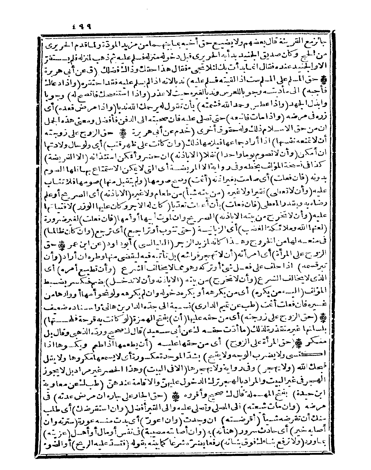 جَائِر مَعَ القريئة قَالَ بَعضهم وَلَا يضيع حق أَخِيه بِمَا بَينهمَا من مزِيد الْمَوَدَّة وَلما قدم الحريري من الْحَج وَكَانَ صديق الْجُنَيْد بَدَأَ بِهِ الحريري قبل دُخُوله منزله فَسلم عَلَيْهِ ثمَّ ذهب لمنزله فَلم يسْتَقرّ إِلَّا والجنيد عِنْده فَقَالَ إِنَّمَا بدأت بك لِئَلَّا تَجِيء فَقَالَ هَذَا حَقك وَذَاكَ فضلك (ق عَن أبي هُرَيْرَة)