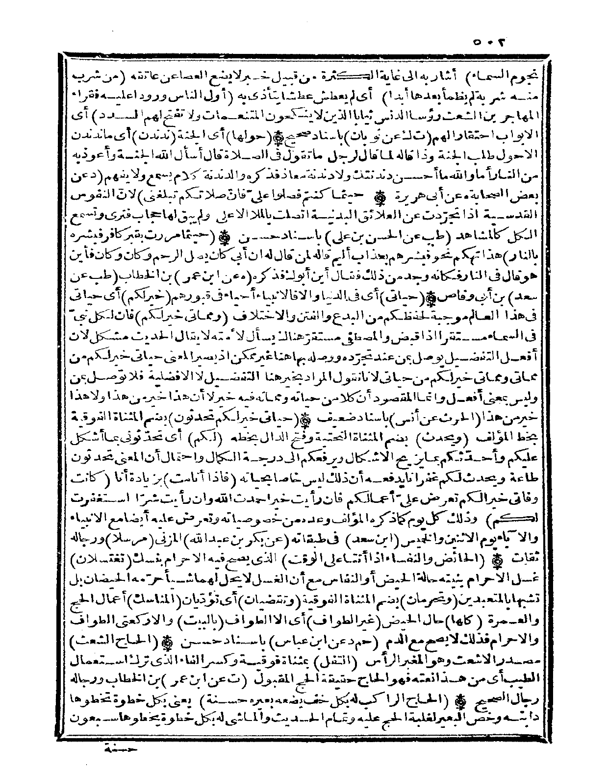 (حَياتِي خير لكم تحدثون) بِضَم الْمُثَنَّاة الْفَوْقِيَّة بِخَط الْمُؤلف (وَيحدث) بِضَم الْمُثَنَّاة التَّحْتِيَّة وَفتح الدَّال بِخَطِّهِ (لكم) أَي تحدثوني بِمَا أشكل عَلَيْكُم وَأُحَدِّثكُمْ بِمَا يزيح الاشكال ويرفعكم إِلَى دَرَجَة الْكَمَال وَاحْتِمَال أَن الْمَعْنى تحدثون طَاعَة وَيحدث لكم غفرانا يَدْفَعهُ أَن ذَلِك لَيْسَ خَاصّا بحياته (فَإِذا أنامت) بِزِيَادَة أَنا (كَانَت وفاتي خيرا لكم تعرض عَليّ أَعمالكُم فَإِن رَأَيْت خيرا حمدت الله وَإِن رَأَيْت شرا استغفرت لكم) وَذَلِكَ كل يَوْم كَمَا ذكره الْمُؤلف وعده من خصوصياته وَتعرض عَلَيْهِ أَيْضا مَعَ الانبياء والآباء يَوْم الِاثْنَيْنِ وَالْخَمِيس (ابْن سعد) فِي طبقاته (عَن بكر بن عبد الله) الْمُزنِيّ (مُرْسلا) وَرِجَاله ثِقَات