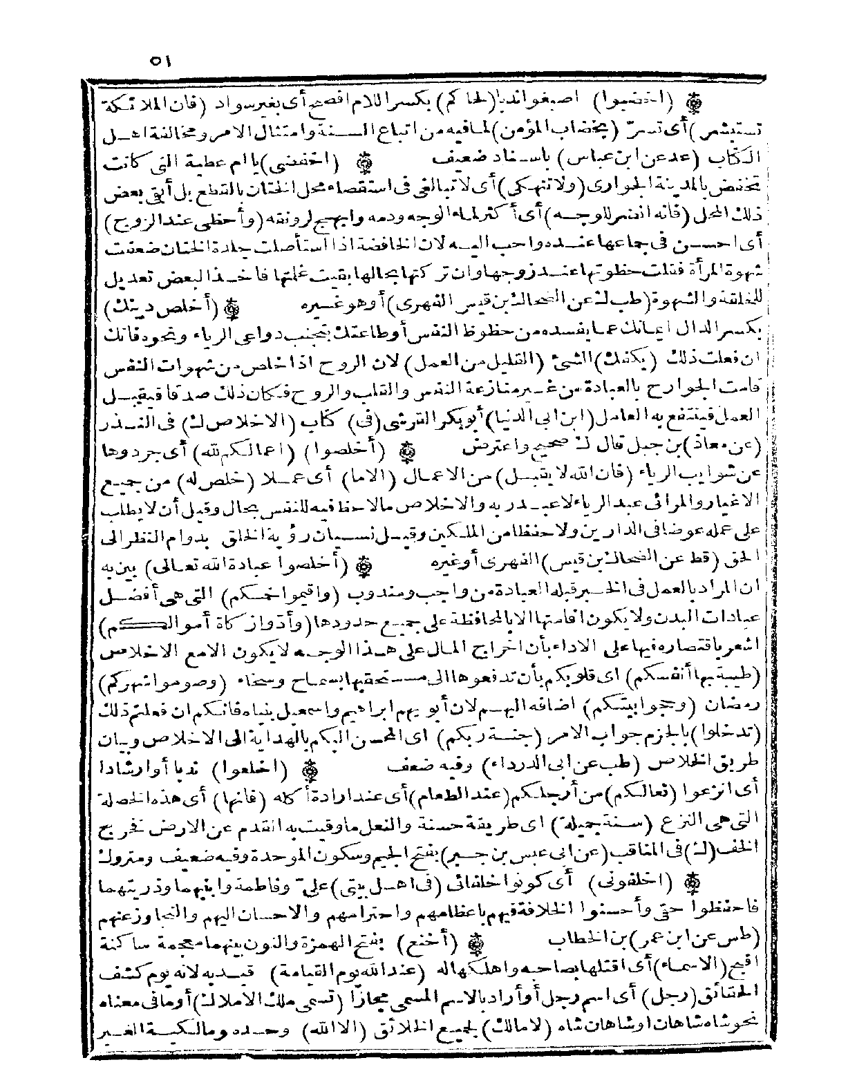 (أَخْلصُوا) (أَعمالكُم لله) أَي جردوها عَن شوايب الرِّيَاء (فَإِن الله لَا يقبل) من الْأَعْمَال (إِلَّا مَا) أَي عملا (خلص لَهُ) من جَمِيع الأغيار والمرائي عبد الرِّيَاء لَا عبد ربه وَالْإِخْلَاص مَا لَا حَظّ فِيهِ للنَّفس بِحَال وَقيل أَن لَا يطْلب على عمله عوضا فِي الدَّاريْنِ وَلَا حفظا من الْملكَيْنِ وَقيل نِسْيَان رُؤْيَة الْخلق بدوام النّظر إِلَى الْحق (قطّ عَن الضَّحَّاك بن قيس) الفِهري أَو غَيره