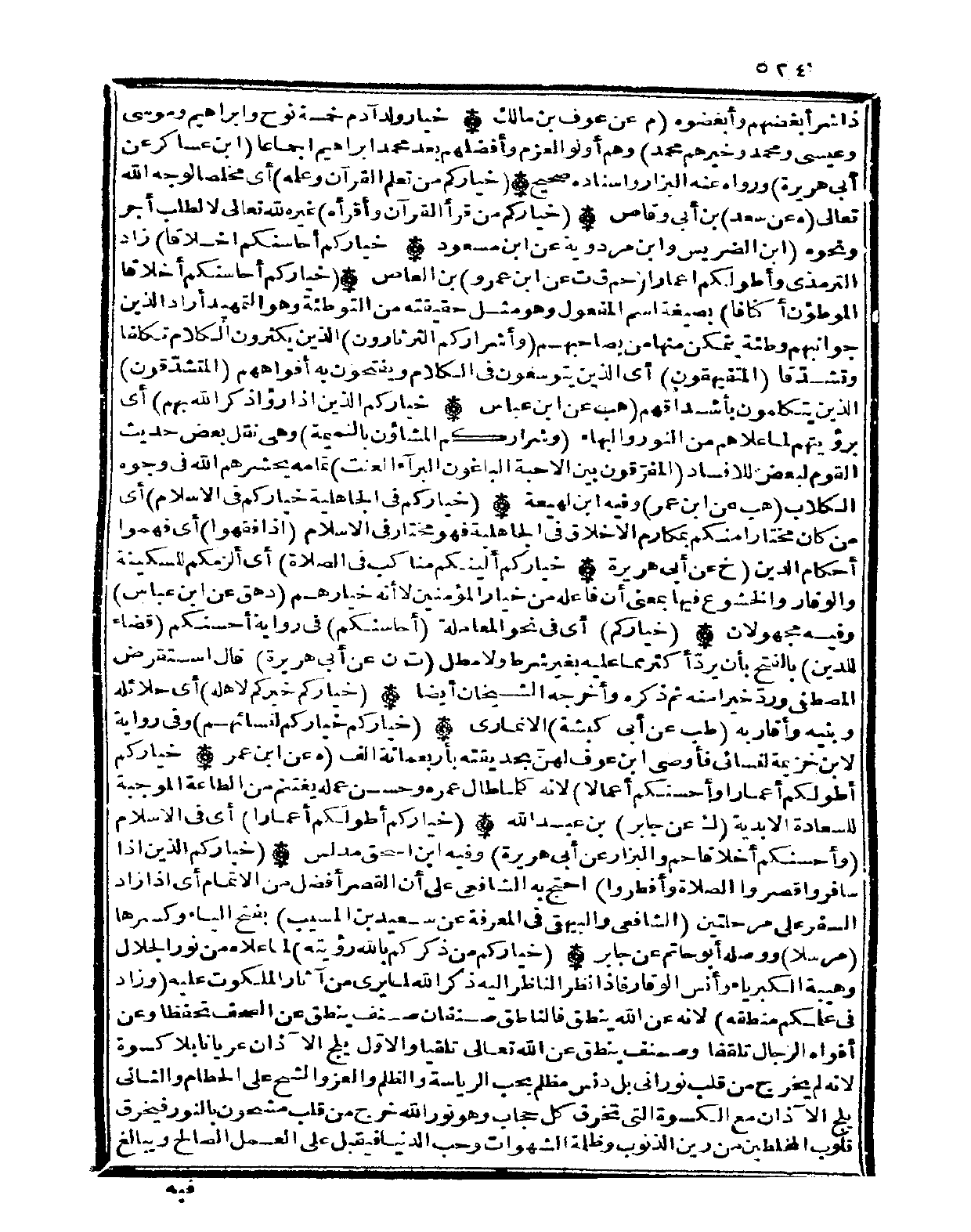 (خياركم خياركم لنسائهم) وَفِي رِوَايَة لِابْنِ خُزَيْمَة لنسائي فأوصى ابْن عَوْف لَهُنَّ بحديقته بأربعمائة ألف (هـ عَن ابْن عمر)